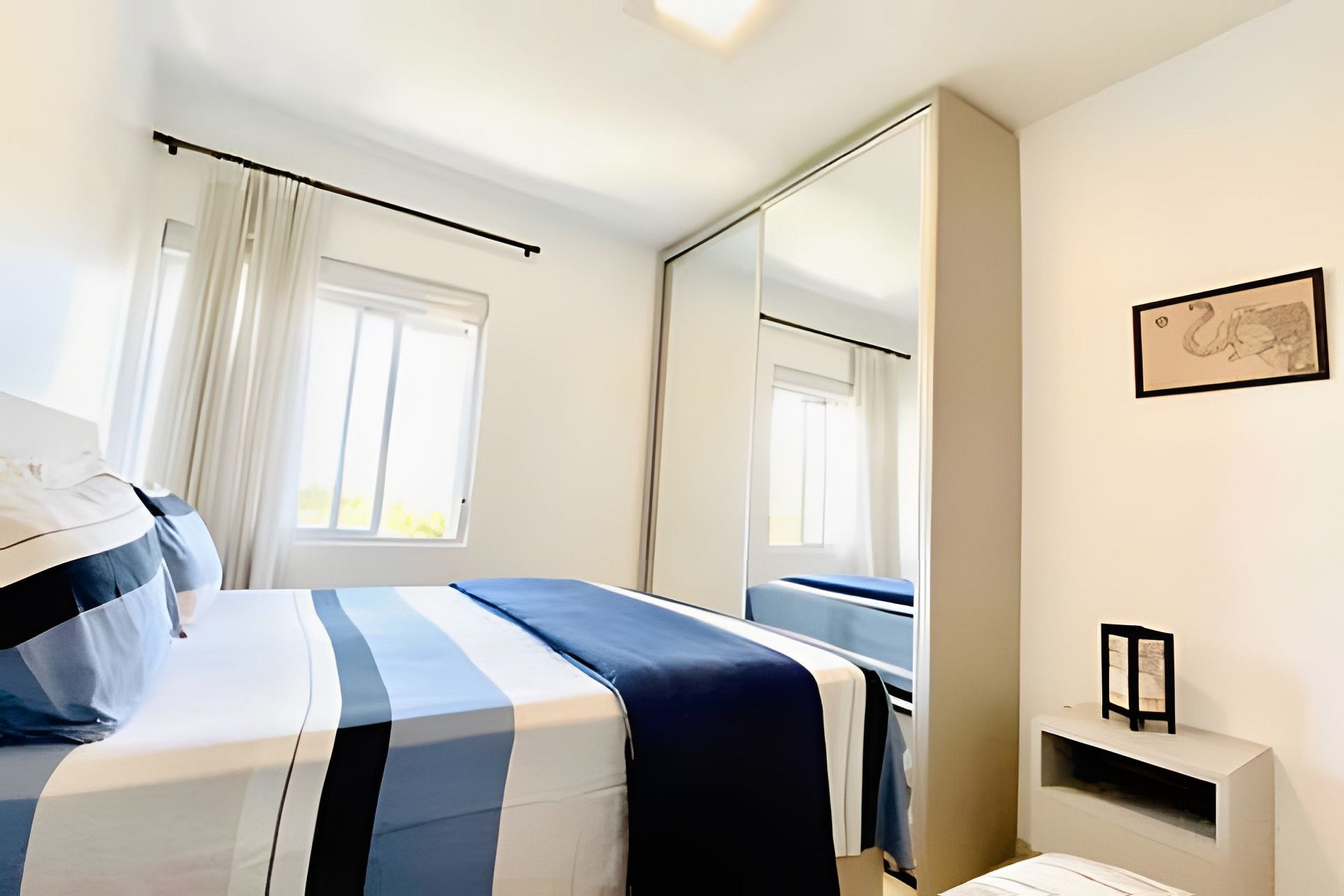 Sã 2 dormitórios, sendo uma suíte com ar-condicionado c/ vista do mar, e + banheiro social. Segundo quarto com cama casal + 1 cama1 solteiro e também ar-condicionado. Cozinha completa, lavanderia com lava e seca e varanda com linda vista de todos os ambientes. Wi-FI, PISCINA E VAGA DE GARAGEM.