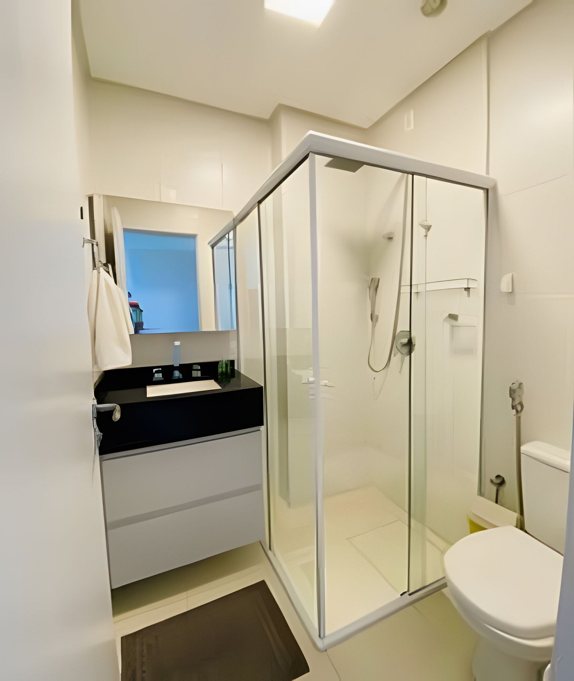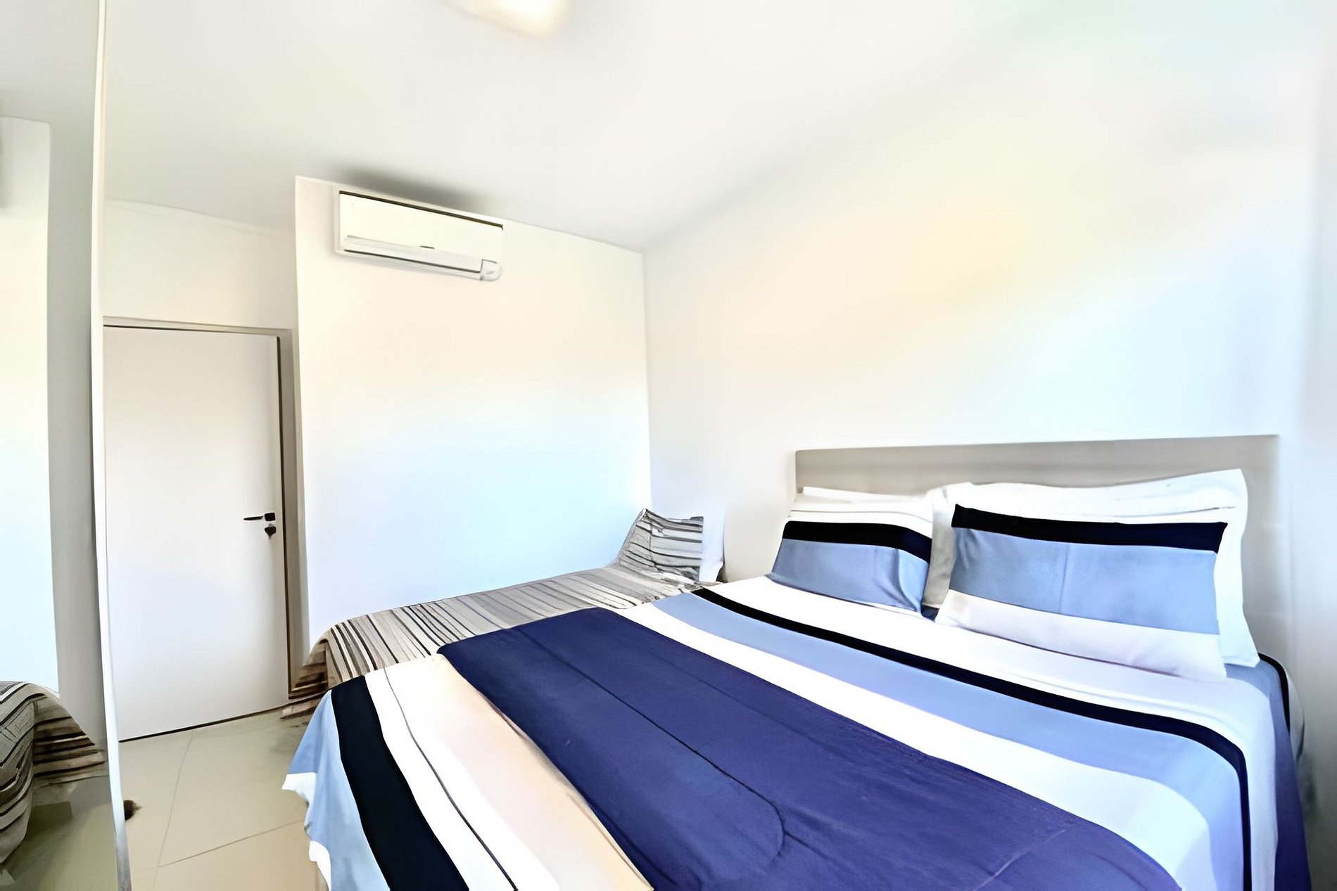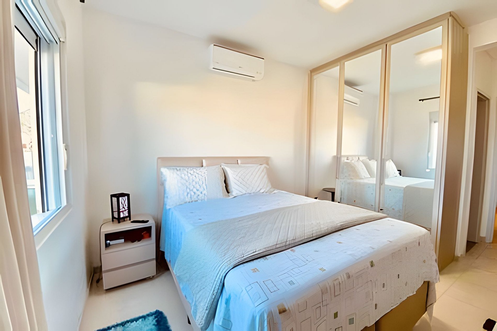 Sã 2 dormitórios, sendo uma suíte com ar-condicionado c/ vista do mar, e + banheiro social. Segundo quarto com cama casal + 1 cama1 solteiro e também ar-condicionado. Cozinha completa, lavanderia com lava e seca e varanda com linda vista de todos os ambientes. Wi-FI, PISCINA E VAGA DE GARAGEM.