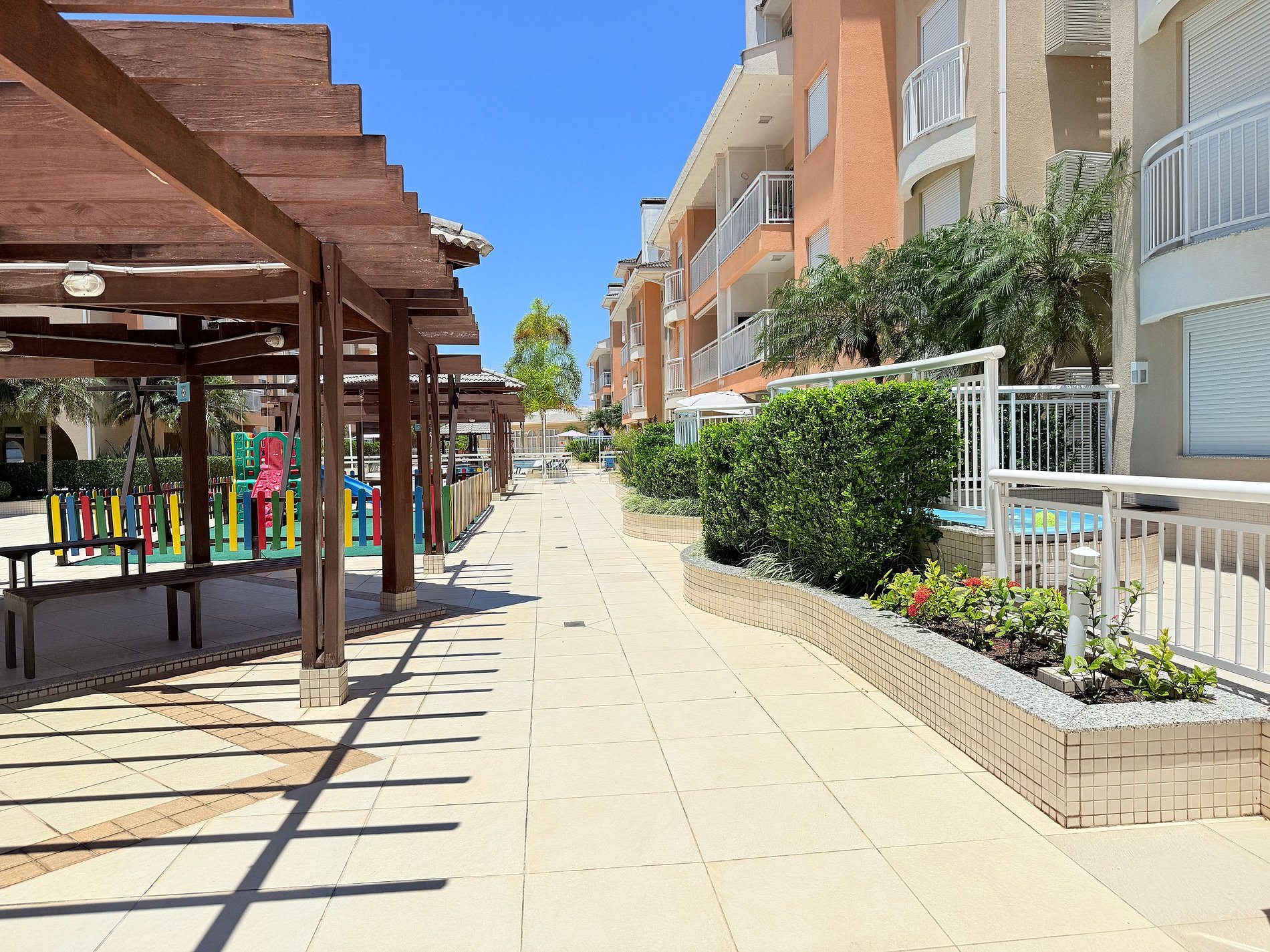 Condomínio de fácil acesso à praia, e uma enorme piscina ao centro, com lado raso para crianças, lado médio e lado fundo. Oferece portaria 24 hrs e próximo a restaurantes, farmácia e supermercados.