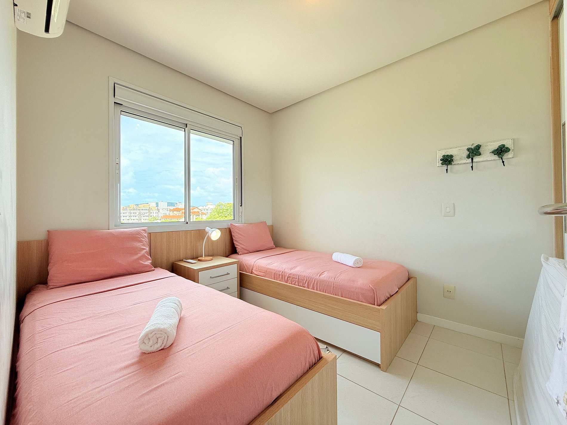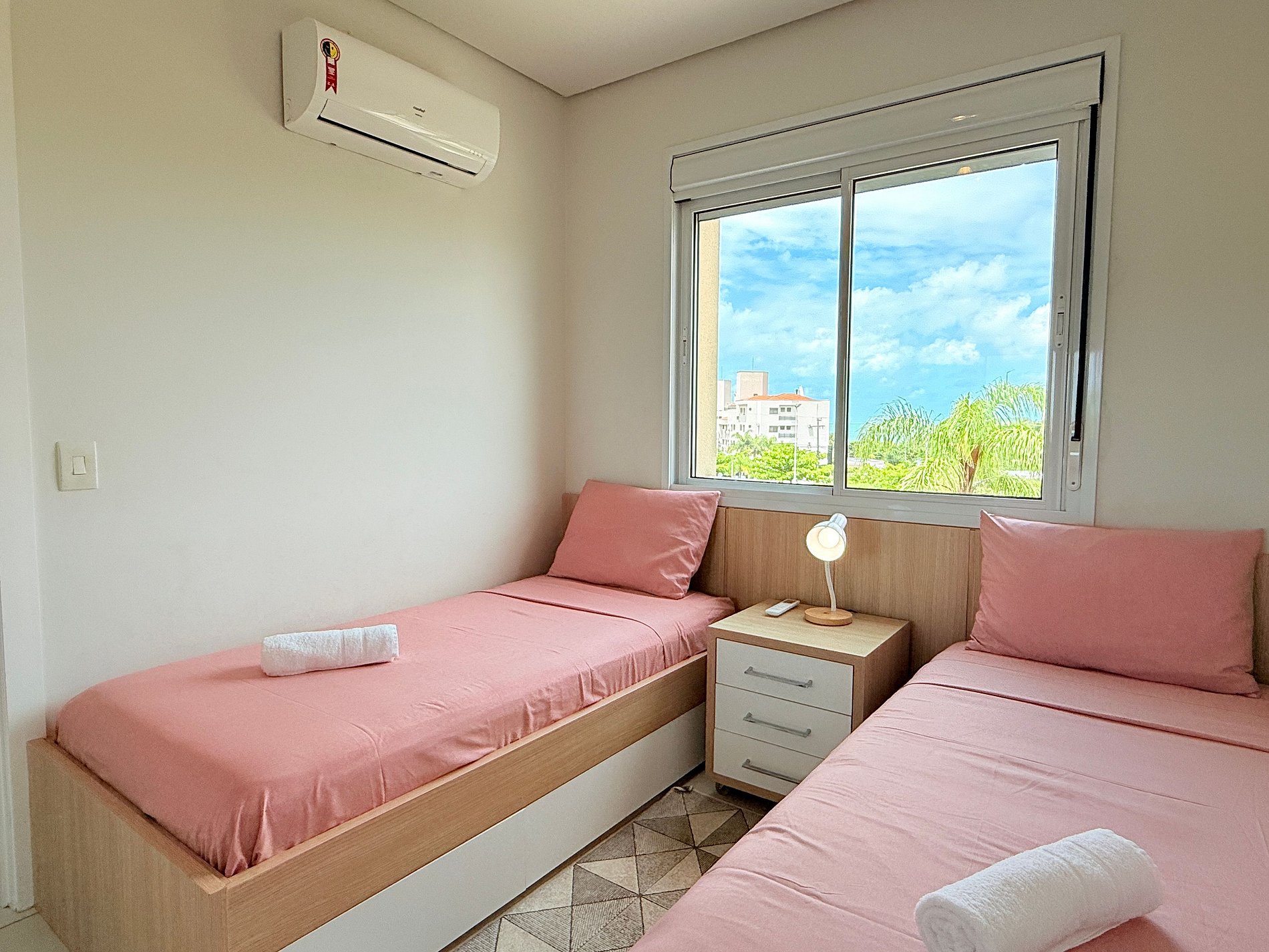 Apartamento amplo e arejado, em condomínio com piscina. Com toda comodidade para receber nossos hóspedes durante o ano todo, seja de temporada ou HOME OFFICE. Pertinho do mar podendo ver pela janela do quarto de solteiro. Localizado na área nobre dos Ingleses, pertinho de mercado, farmácia e sorveteria italiana. Varanda com churrasqueira e toda fechada de vidro, para maior conforto mesmo em dias de chuva… e podendo abrir no verão.
