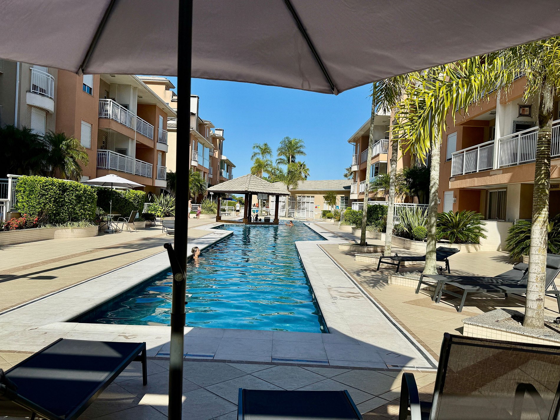 Condomínio localizado entre o mar e a montanha com uma piscina recém revitalizada localizada estrategicamente no meio do condomínio, surpreendendo à todos que ali entram. Piscina enorme com lado razo, médio e fundo, em meio à palmeiras, vista para a montanha e muito ensolarada. Localizado na área dos Ingleses Norte, esquina com a Rua das Gaivotas, área muito bem planejada com ruas largas, ambiente familiar e tranquilo. Com portaria 24 hrs.