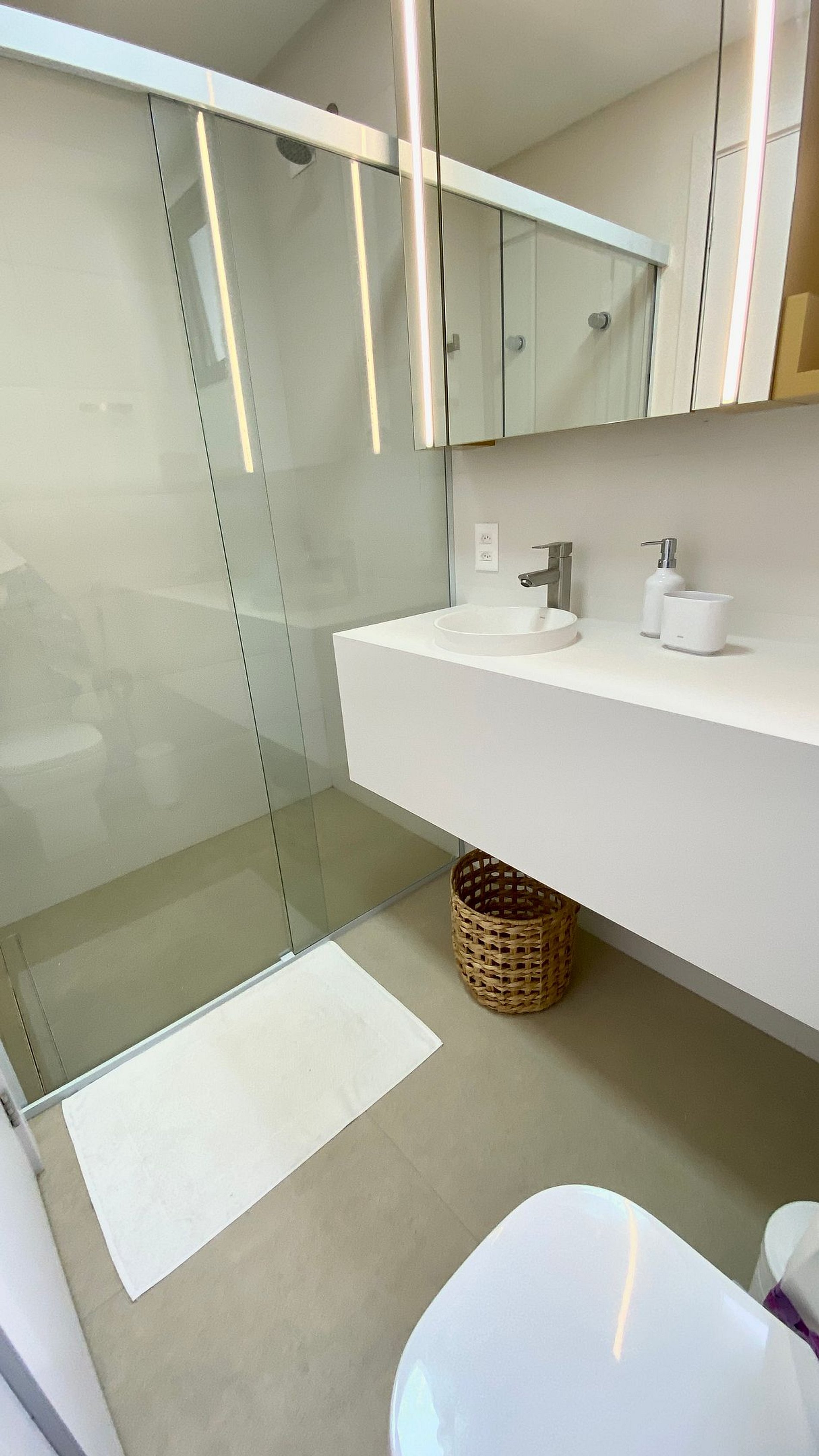 -Por favor não joguem papel higiênico ou outras coisas no vaso sanitário, pois os mesmos podem entupir durante sua acomodação. Use a lixeirinha ao lado.