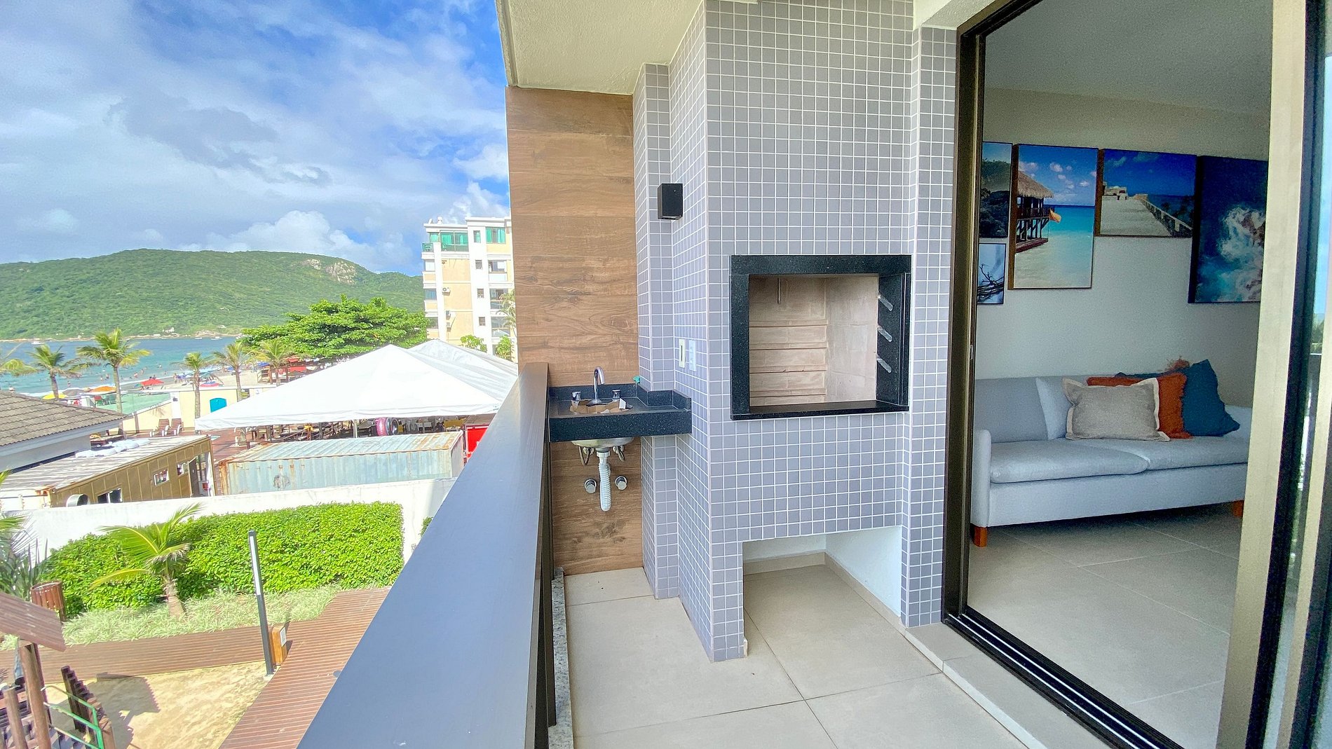 Varanda com churrasqueira.