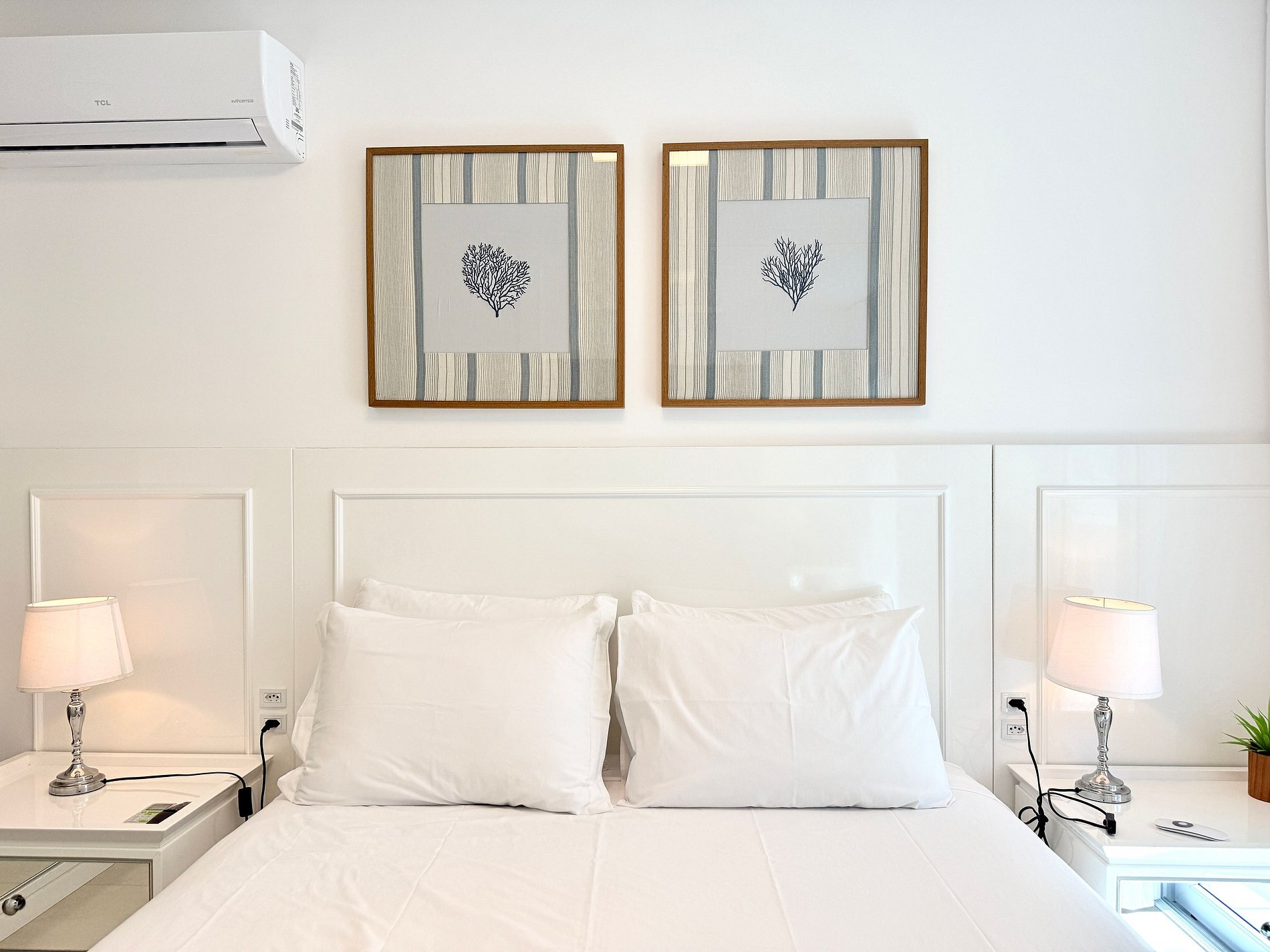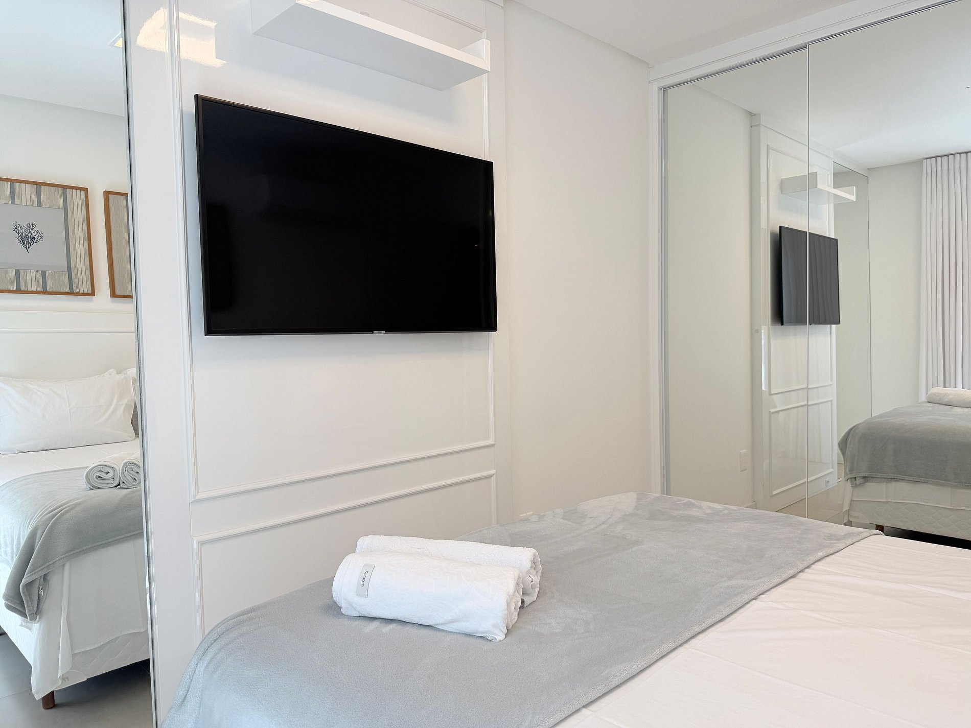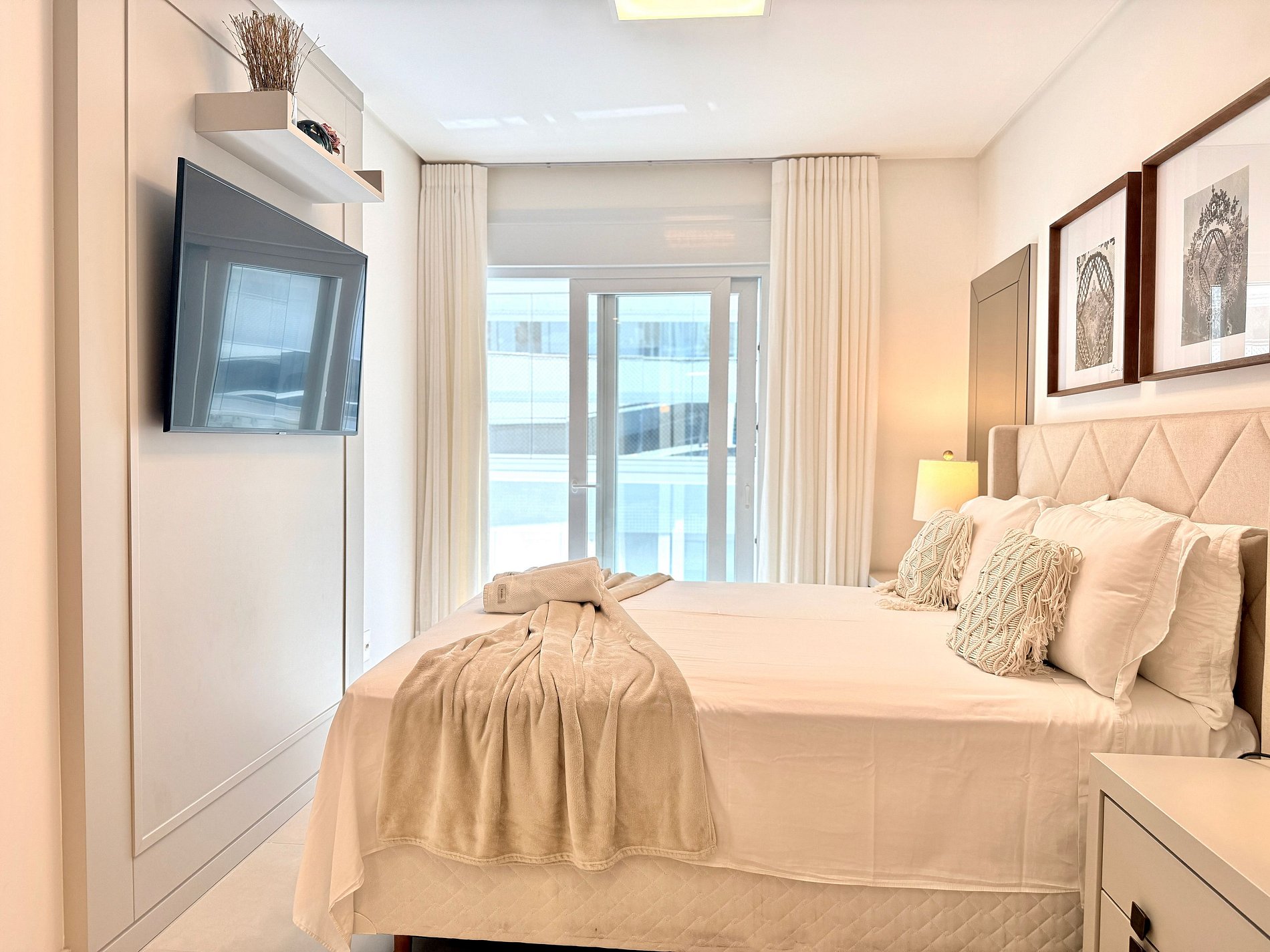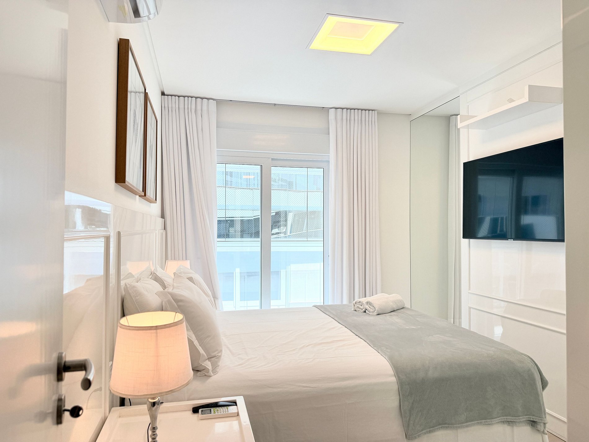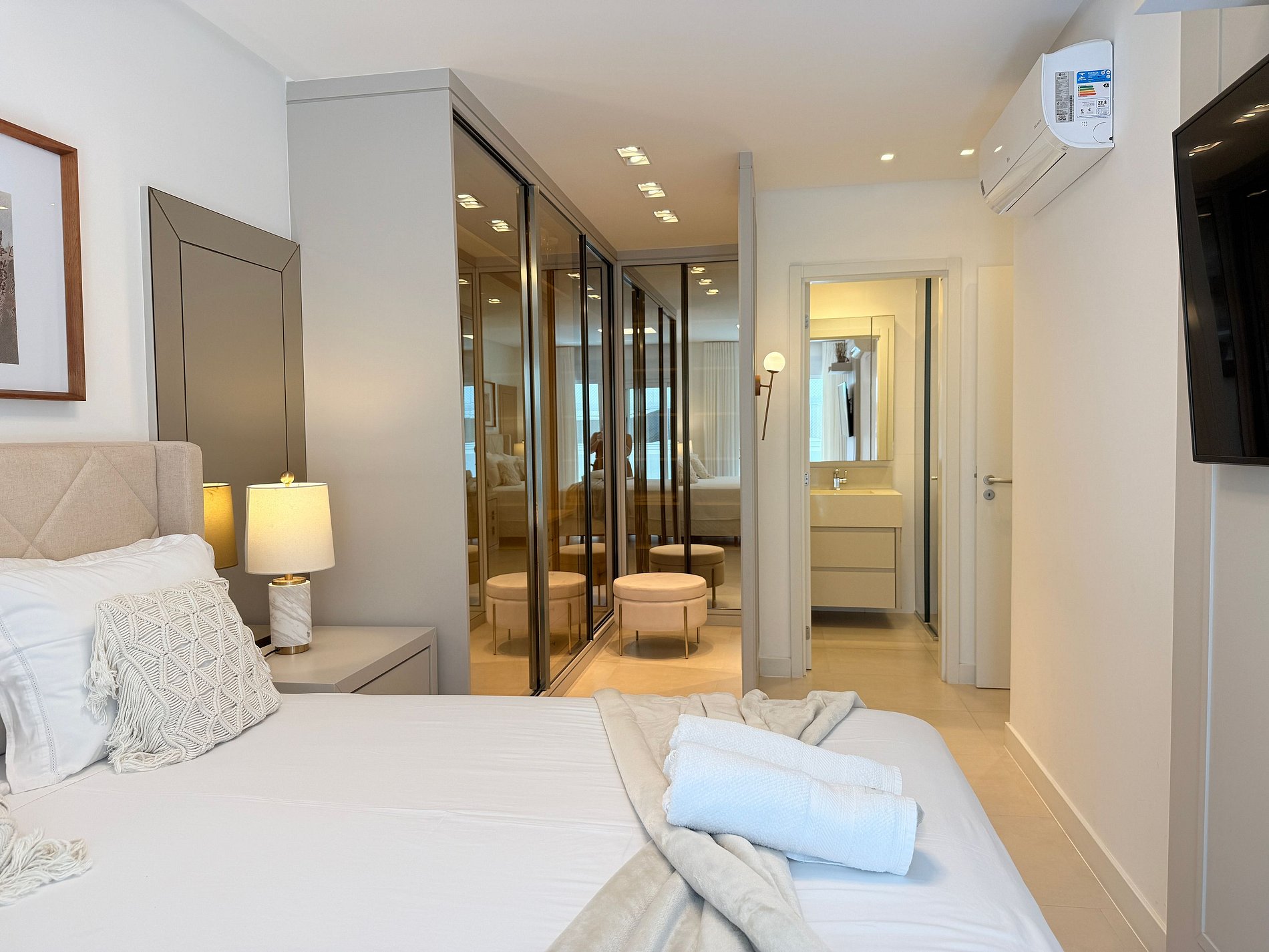 Para hospedes exigentes que procuram um lugar de alto padrão para passar férias na praia. Esse apartamento foi projetado com muito bom gosto e requinte. Com 2 quartos, sendo uma suíte com cama queen, TV e ar-condicionado.
