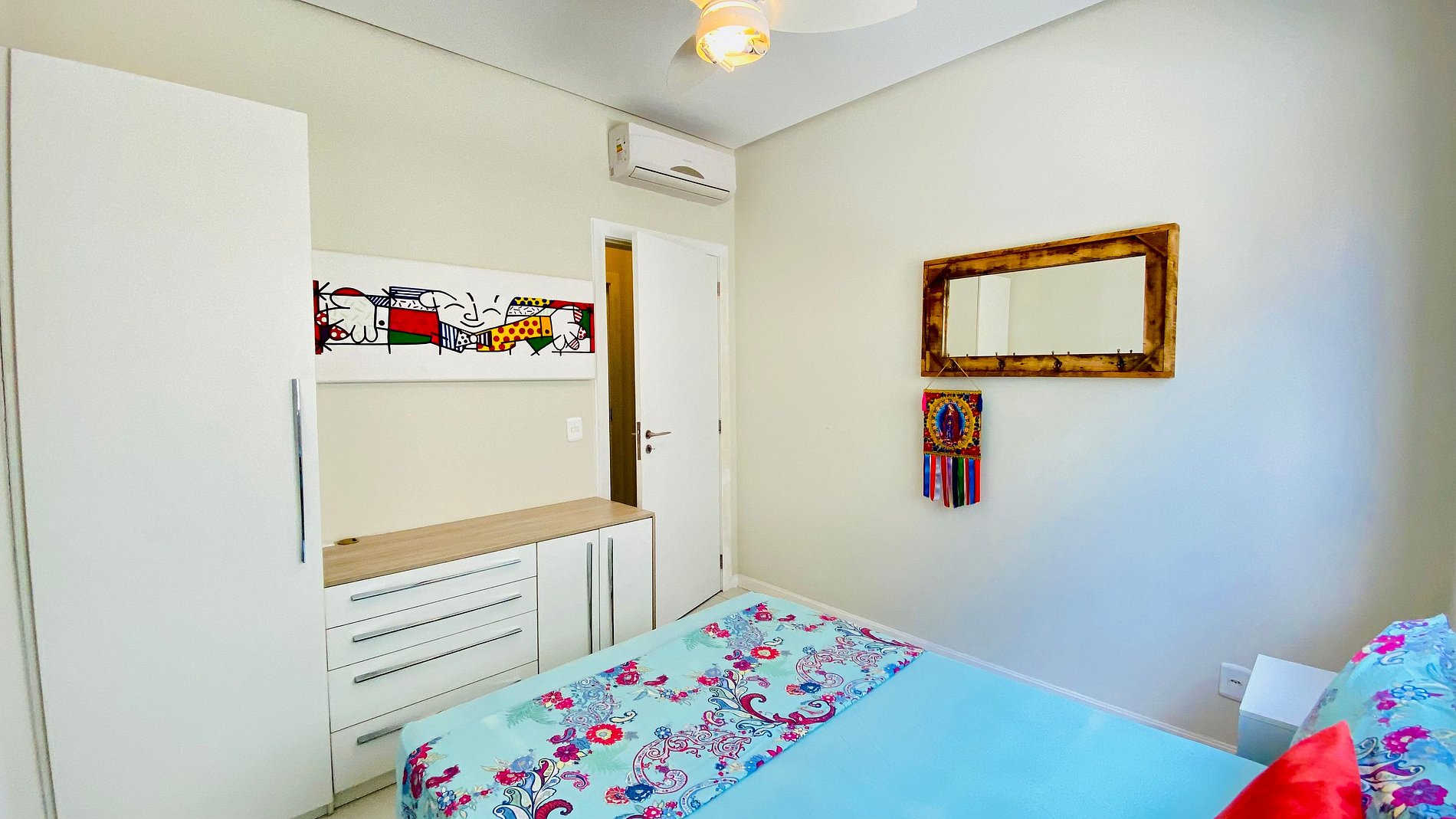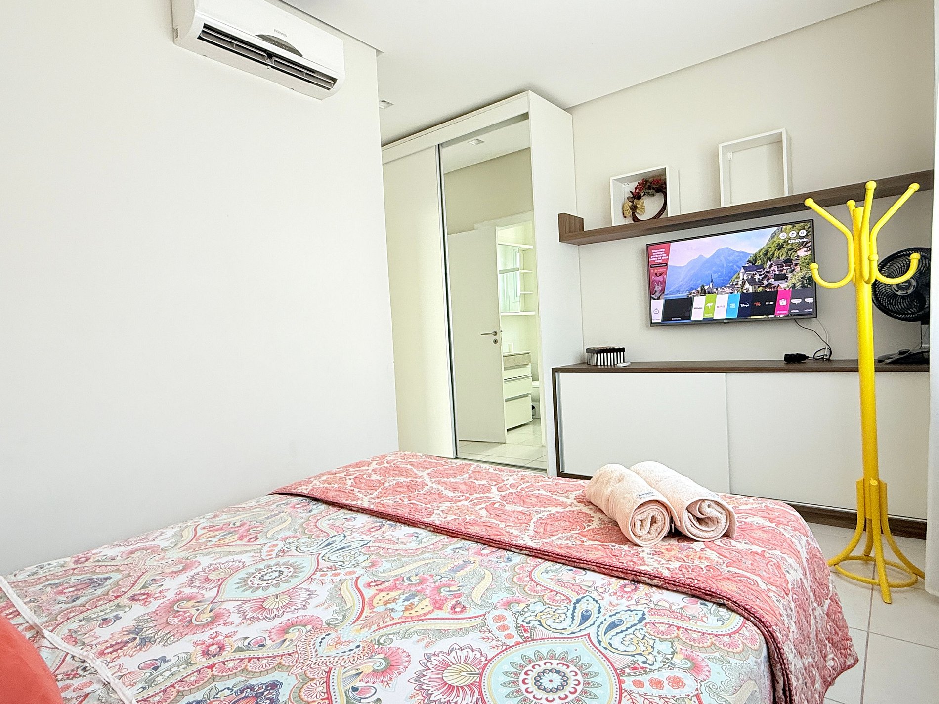 Sendo uma suíte com cama queen, TV smart, e ar-condicionado.