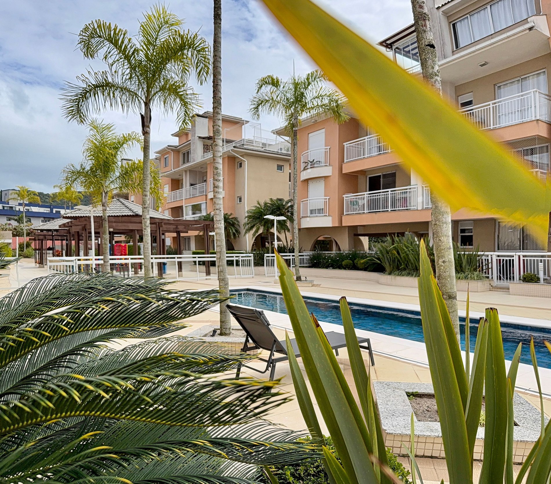Condomínio localizado entre o mar e a montanha com uma piscina recém revitalizada localizada estrategicamente no meio do condomínio, surpreendendo à todos que ali entram. Piscina enorme com lado razo, médio e fundo, em meio à palmeiras, vista para a montanha e muito ensolarada. Localizado na área dos Ingleses Norte, esquina com a Rua das Gaivotas, área muito bem planejada com ruas largas, ambiente familiar e tranquilo. Com portaria 24 hrs.