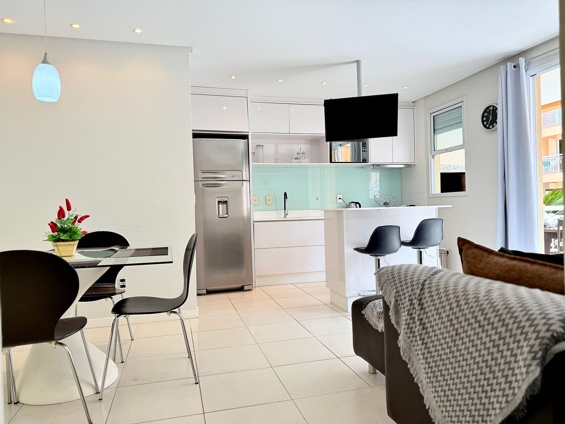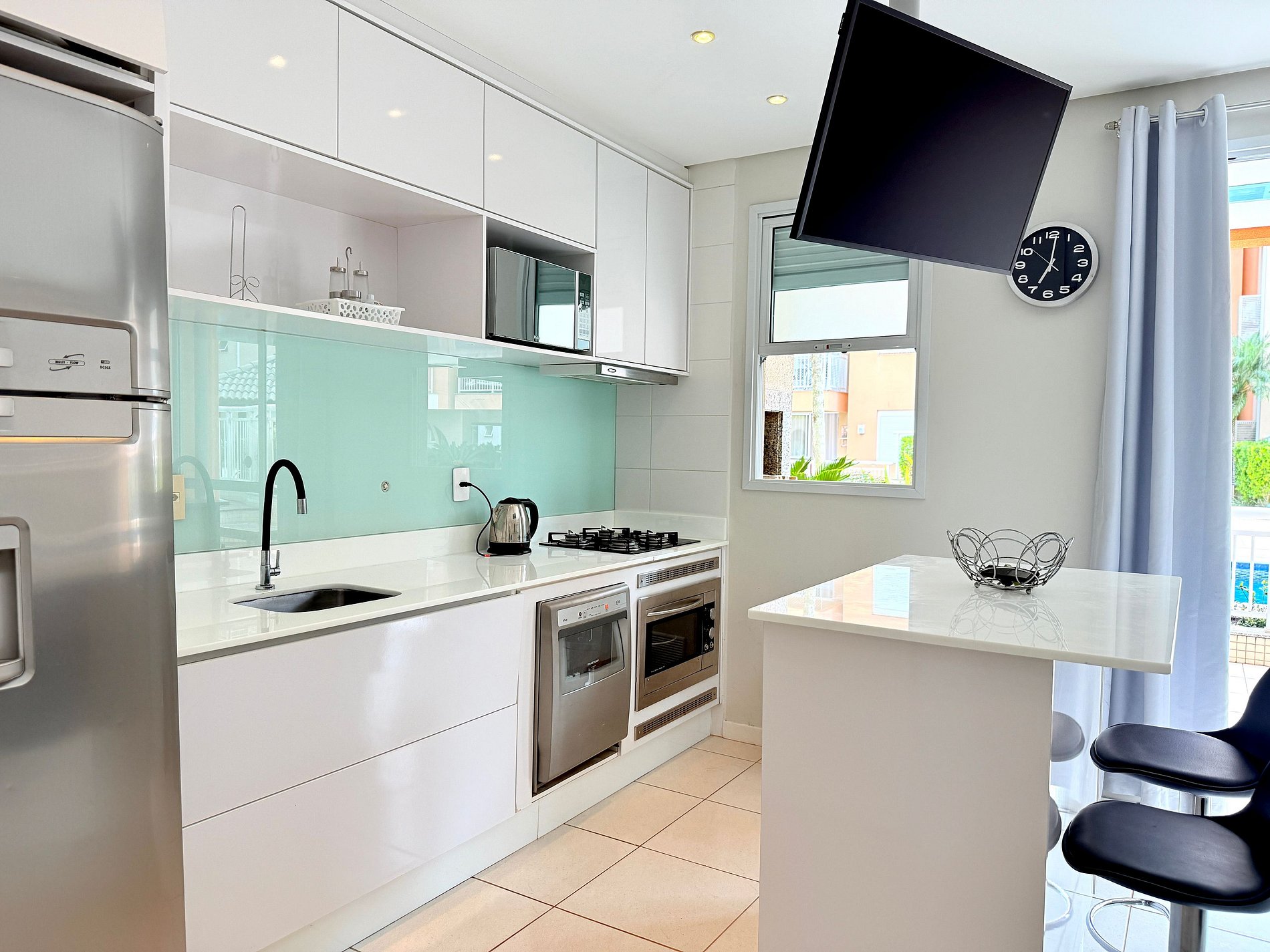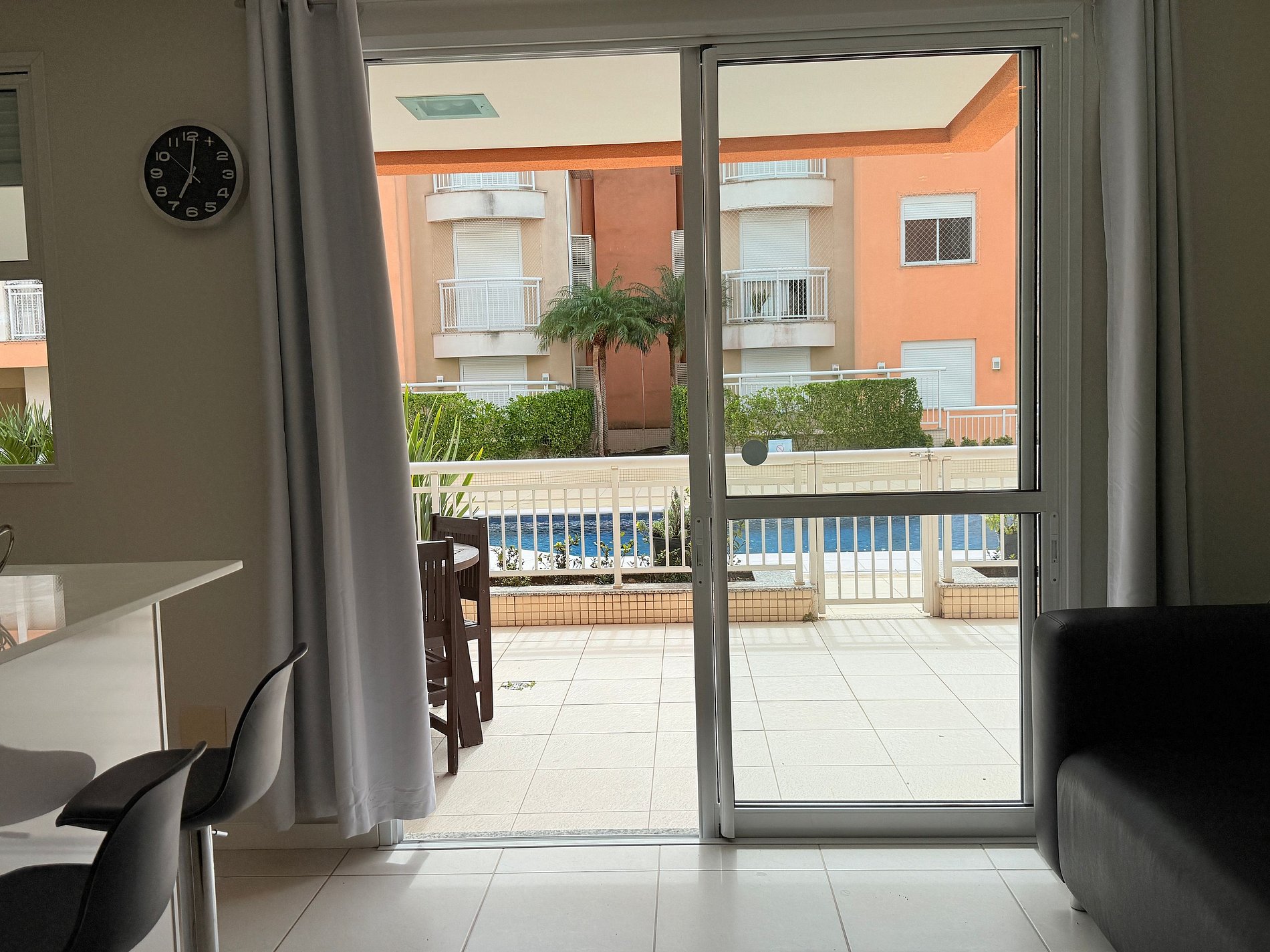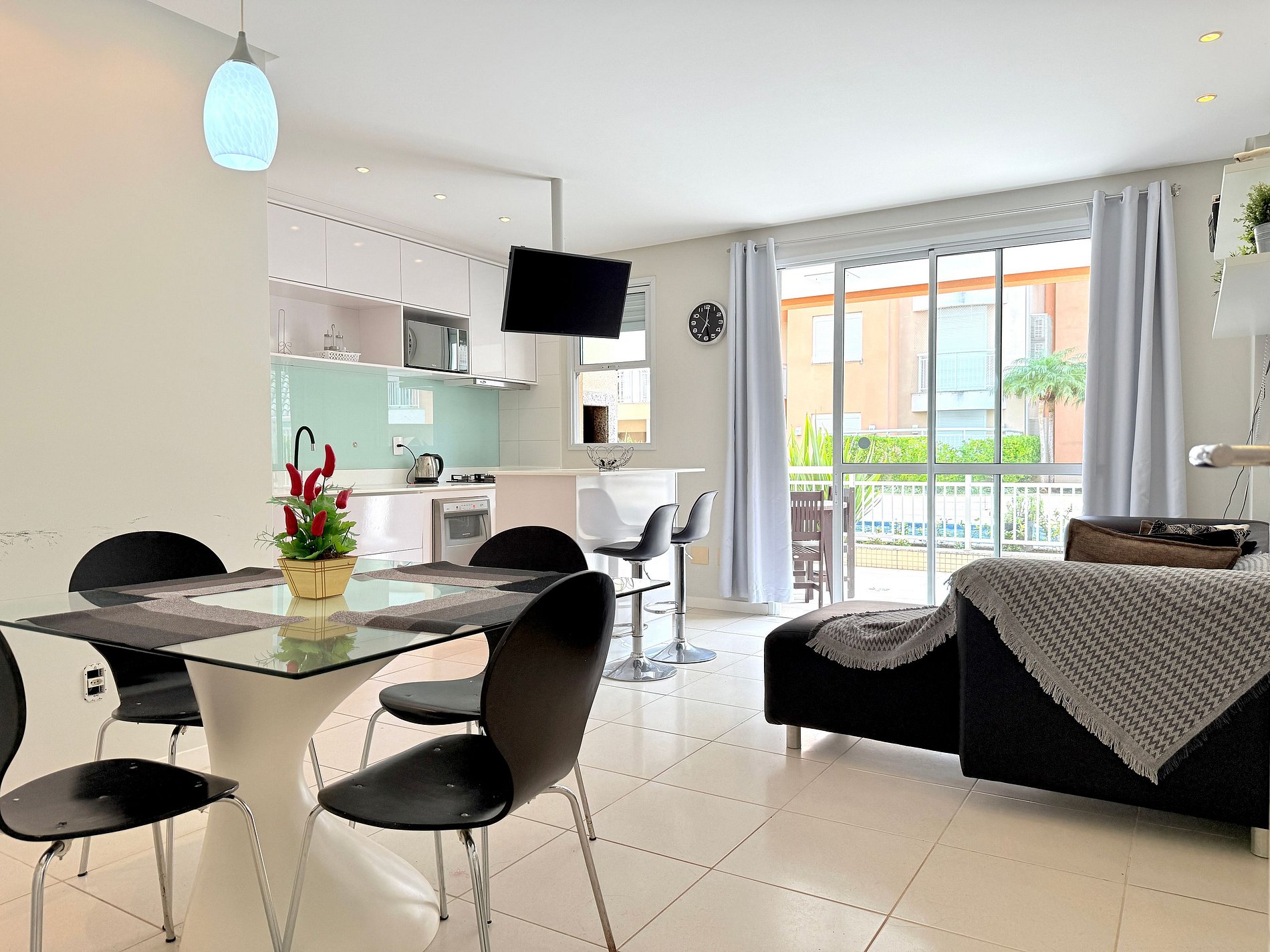 Isola Ravenna Residential Condominium, Ground Floor Apartment with private pool (not heated, but very pleasant in summer) in a large and private balcony, and in front of the fully renovated social pool with a privileged view. With 2 bedrooms being a suite with queen bed and a spacious wardrobe, and air conditioning. Second bedroom with 2 bunk beds, or 4 single beds, also with air conditioning + double sofa bed in the living room. Social bathroom. Comfortably accommodates 6 guests. Living room with smart TV, apps, and fast WI-FI. Combined dining room and kitchen, facilitating family reunions or friends. Kitchen more than complete, because the owner likes to cook, and laundry with washing machine. Private garage for 1 car, and free parking in front of the condominium. Gated condominium, 24-hour security. Access on foot to the beach, with a distance of less than 150 meters. In the perimeter of a block you will find 2 markets, dozens of restaurants, pharmacy, bars and the famous Italian ice cream parlor and also close to trails, located in the best area of Praia dos Ingleses Norte. This area is more residential, but like 1km is the center of the English, with hundreds of places to eat, with supermarkets and pharmacies 24 hours, shops, etc... Being the most infrastructured neighborhood in Florianópolis. Beach kit with stroller, 4 beach chairs and umbrella.