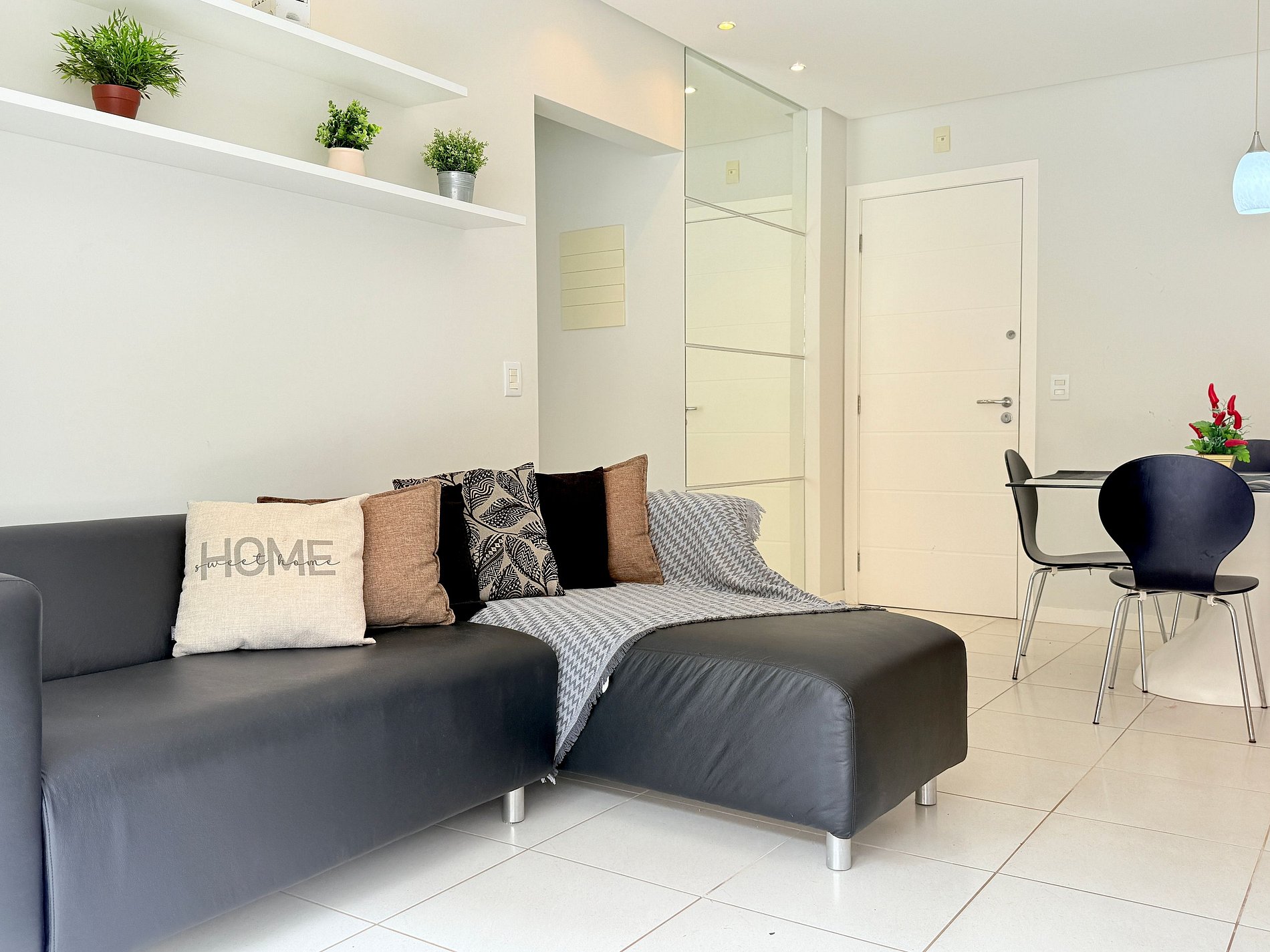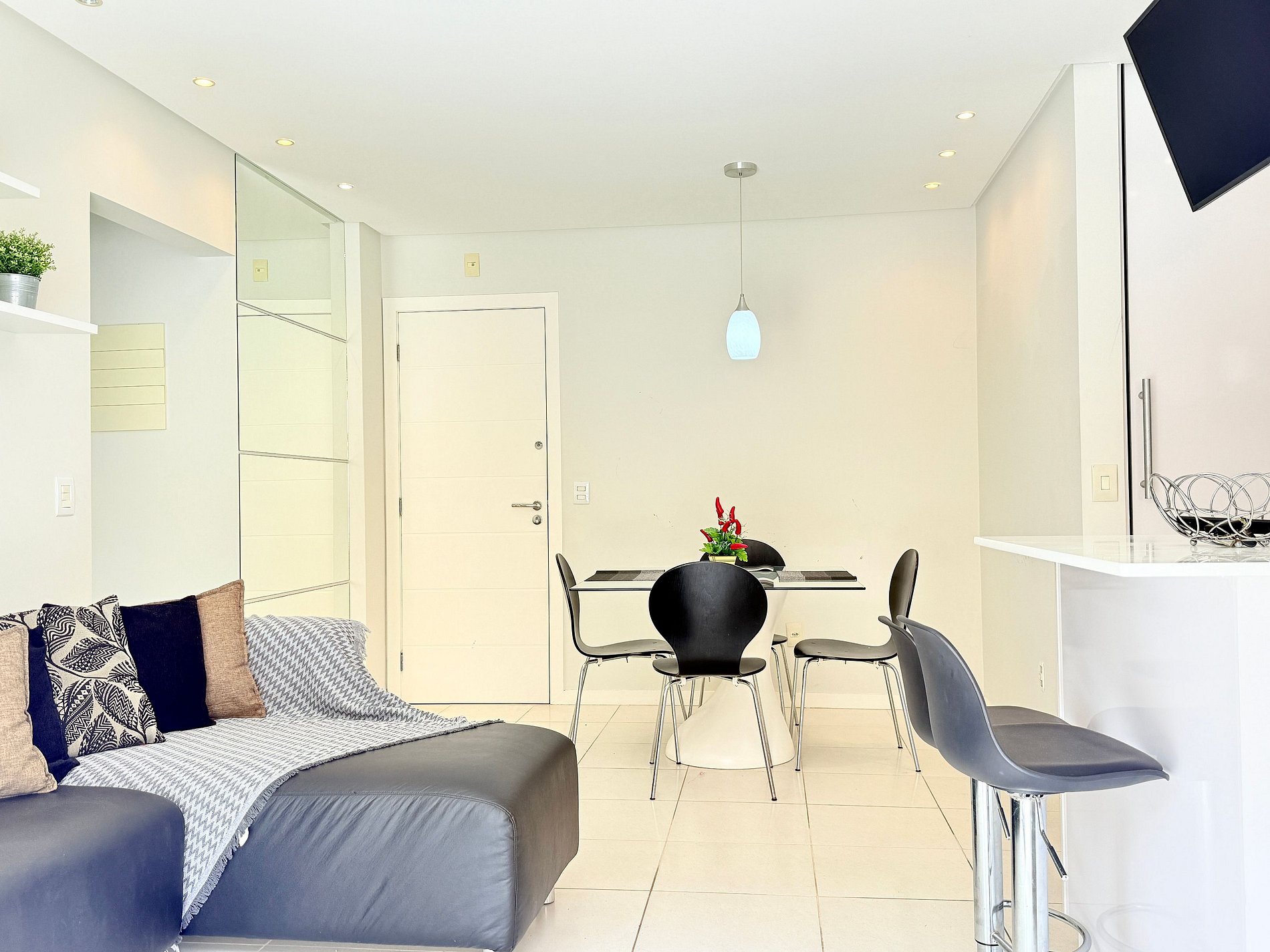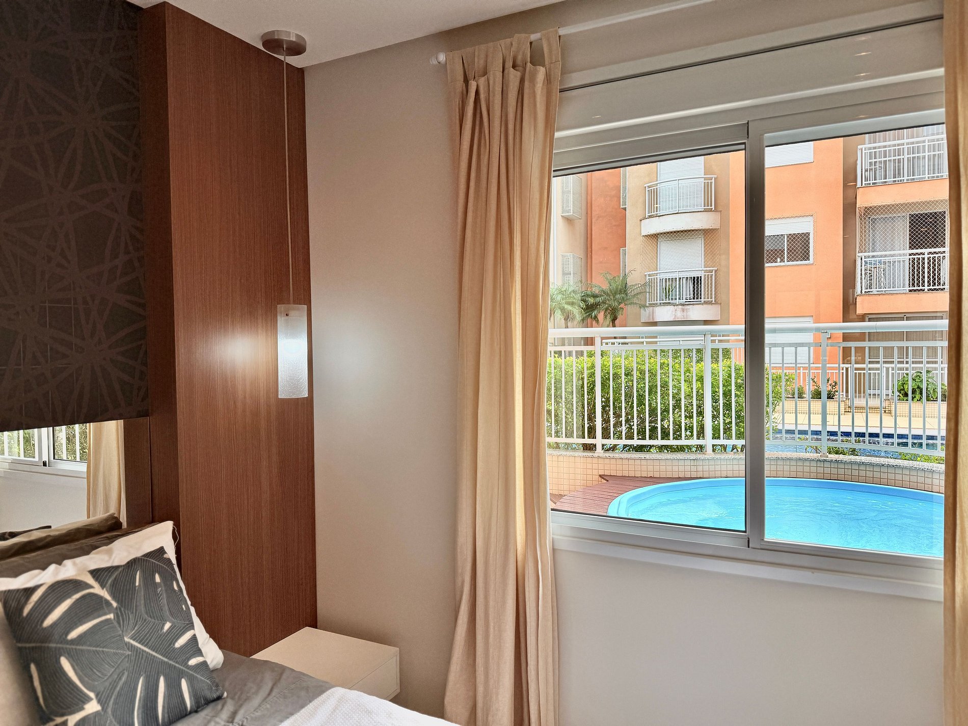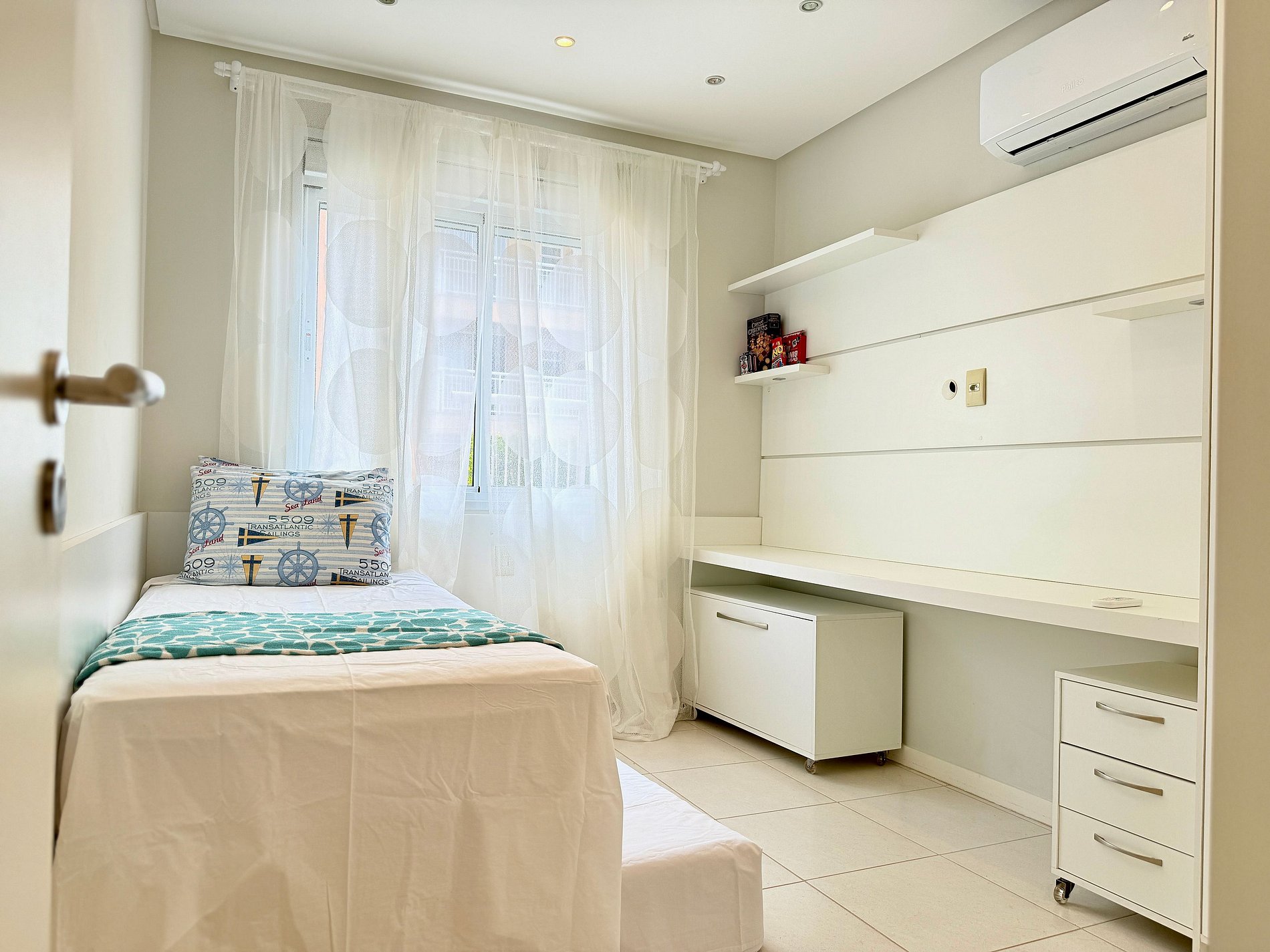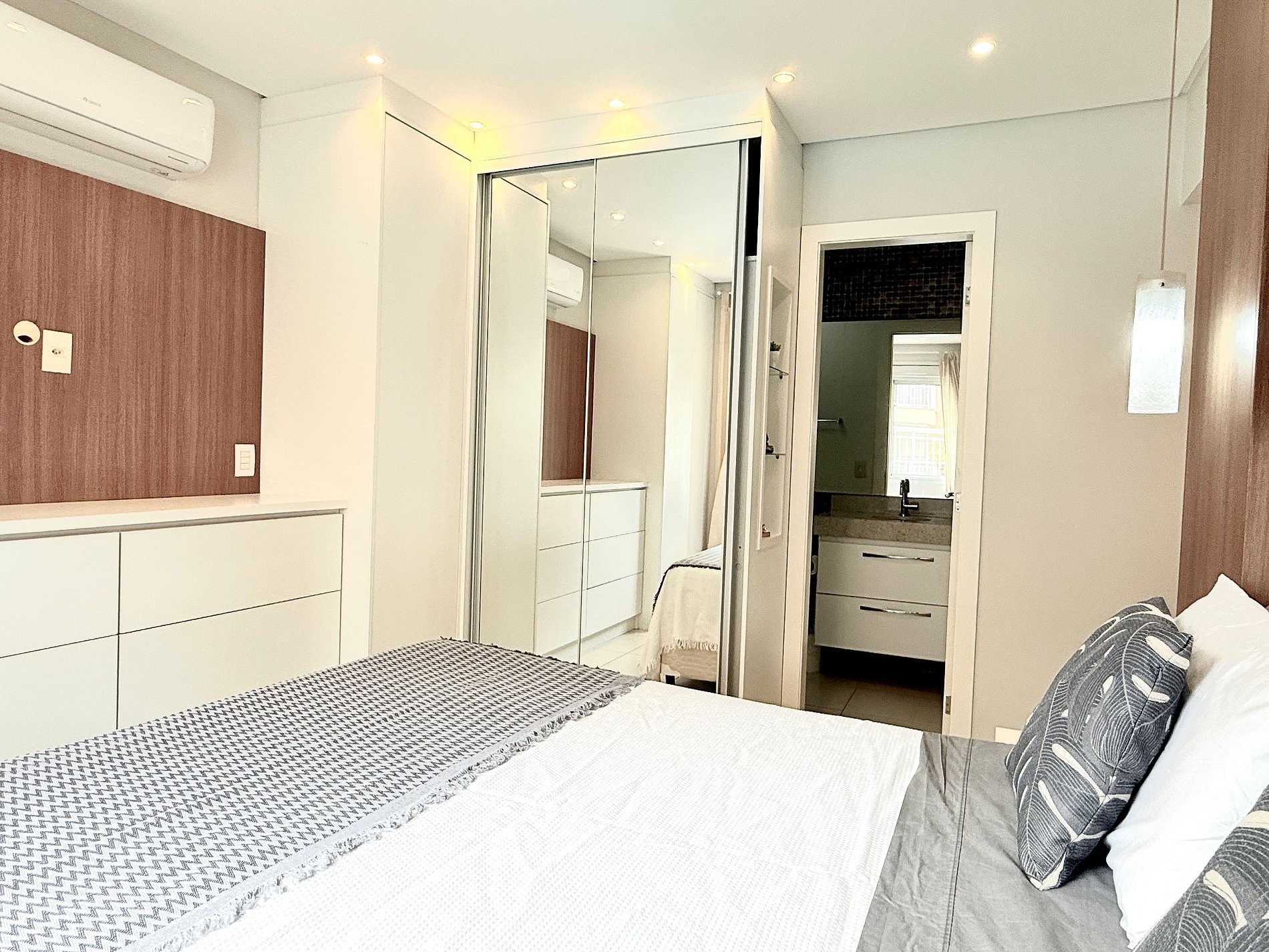 Isola Ravenna Residential Condominium, Ground Floor Apartment with private pool (not heated, but very pleasant in summer) in a large and private balcony, and in front of the fully renovated social pool with a privileged view. With 2 bedrooms being a suite with queen bed and a spacious wardrobe, and air conditioning. Second bedroom with 2 bunk beds, or 4 single beds, also with air conditioning + double sofa bed in the living room. Social bathroom. Comfortably accommodates 6 guests. Living room with smart TV, apps, and fast WI-FI. Combined dining room and kitchen, facilitating family reunions or friends. Kitchen more than complete, because the owner likes to cook, and laundry with washing machine. Private garage for 1 car, and free parking in front of the condominium. Gated condominium, 24-hour security. Access on foot to the beach, with a distance of less than 150 meters. In the perimeter of a block you will find 2 markets, dozens of restaurants, pharmacy, bars and the famous Italian ice cream parlor and also close to trails, located in the best area of Praia dos Ingleses Norte. This area is more residential, but like 1km is the center of the English, with hundreds of places to eat, with supermarkets and pharmacies 24 hours, shops, etc... Being the most infrastructured neighborhood in Florianópolis. Beach kit with stroller, 4 beach chairs and umbrella.