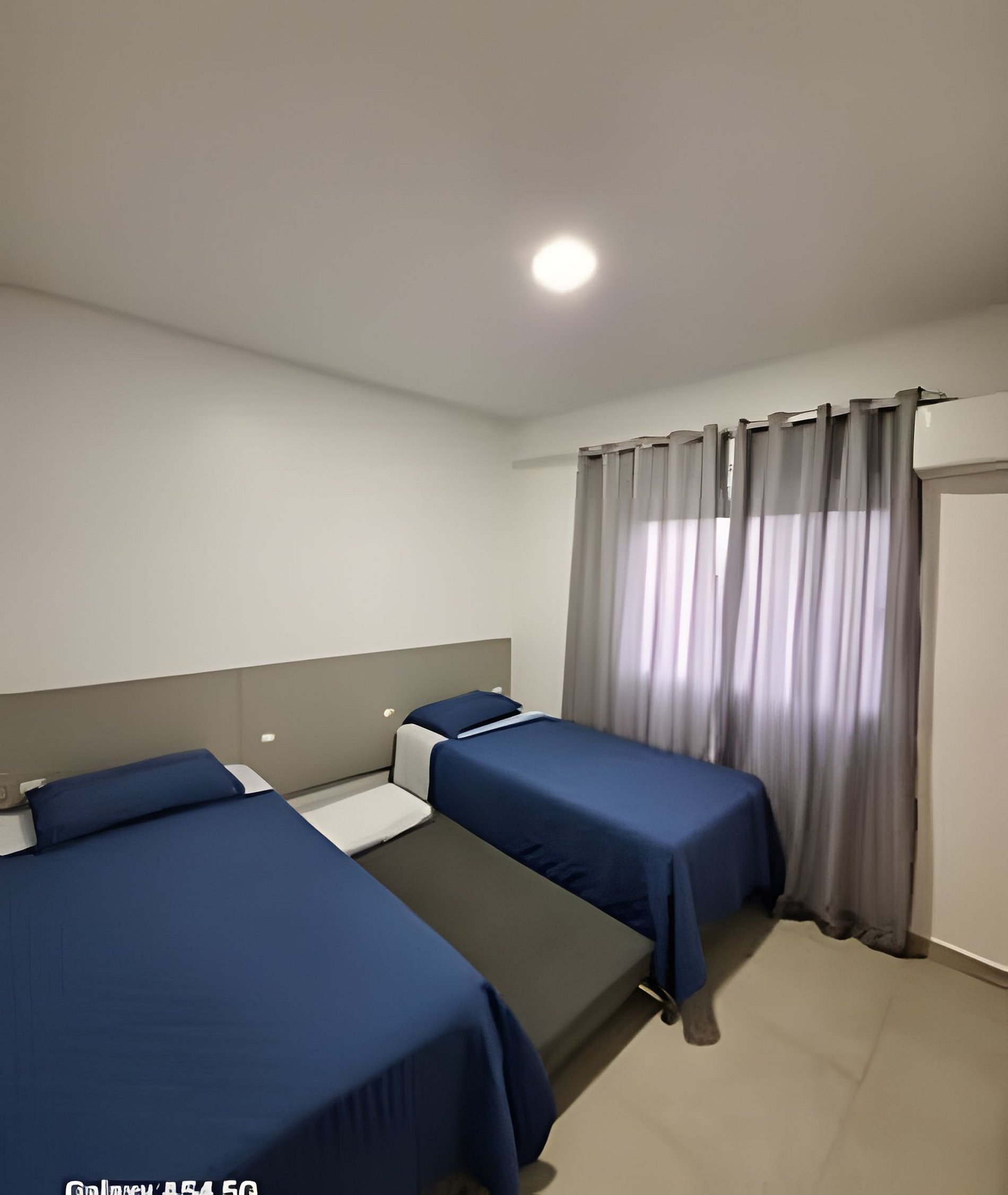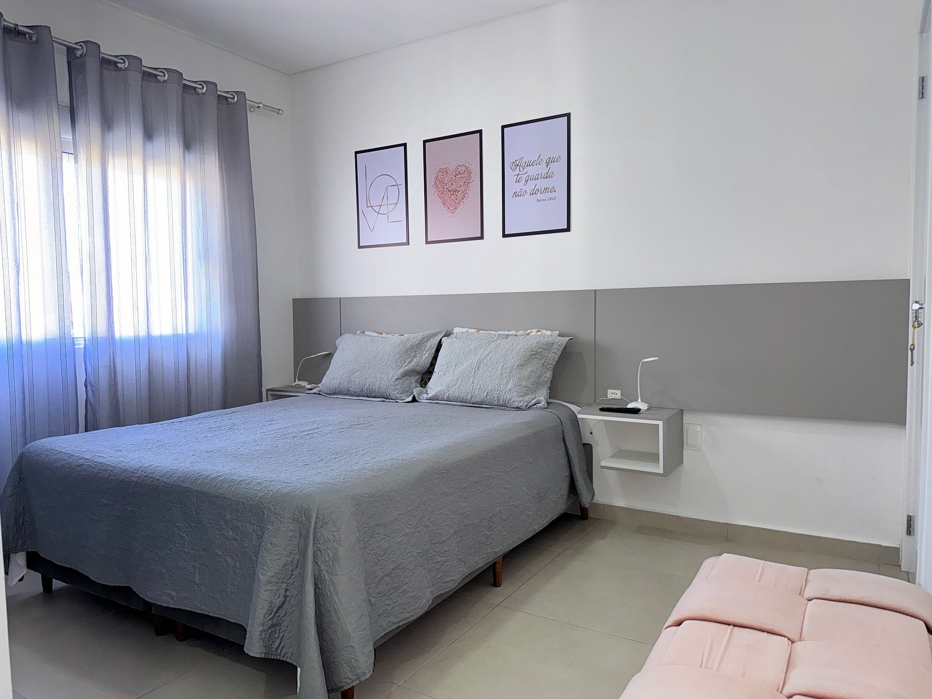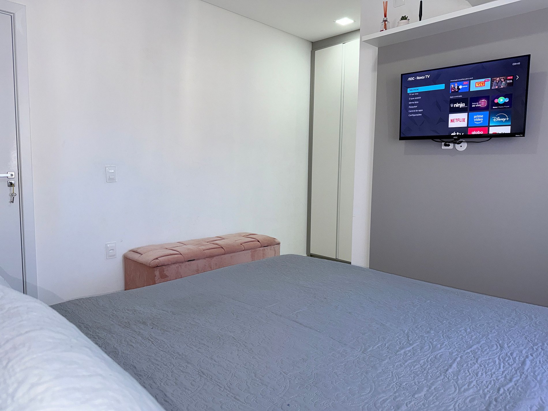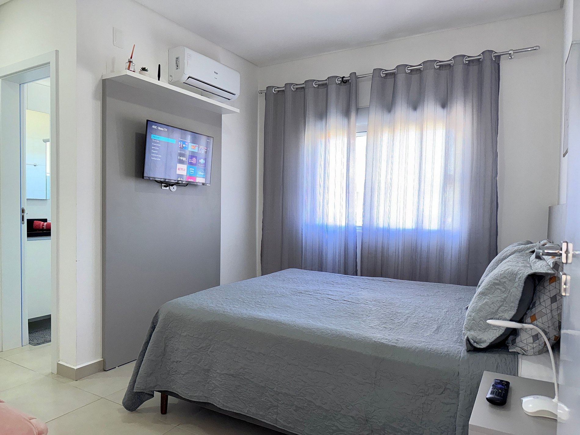 Apto novo a 400m da praia no centrinho. Próximo dos bares, restaurantes, farmácia e lojas. Apto 3 andar de frente c/churrasqueira e sacada. Dois quartos, sendo 1 suíte c/cama Queen e TV. Segundo quarto 2 camas solteiro e 1 auxiliar. Ar condicionado sala e quartos. Sala TV 50" Smart, canais e filmes liberados. Possui Wi-Fi e Sofá cama 2 lugares na sala. Cozinha completa e lavanderia com maq lavar roupa. Garagem 1 vaga. Acomoda até 5 pessoas.