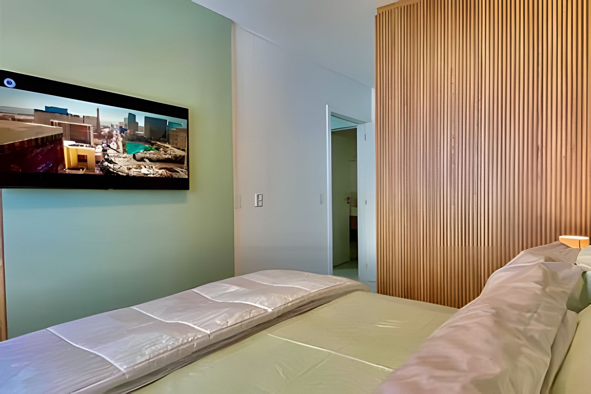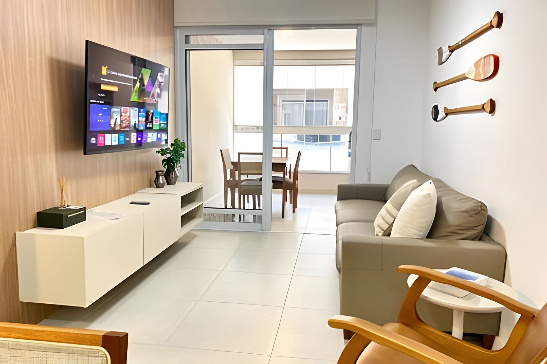 Sala de estar com TV Smart gigante, wi-fi de alta qualidade e também com ar-condicionado. Ambiente integrado, espaçoso, clean e iluminado. Sala de jantar e também mesa de jantar na varanda.Uma cozinha totalmente equipada incluindo lava-louças, filtro de água, cafeteira expresso e fogão à condução. Lavanderia com lava e seca, e e máquina de lavar e secar roupa na unidade. Varanda envidraçada, com churrasqueira.