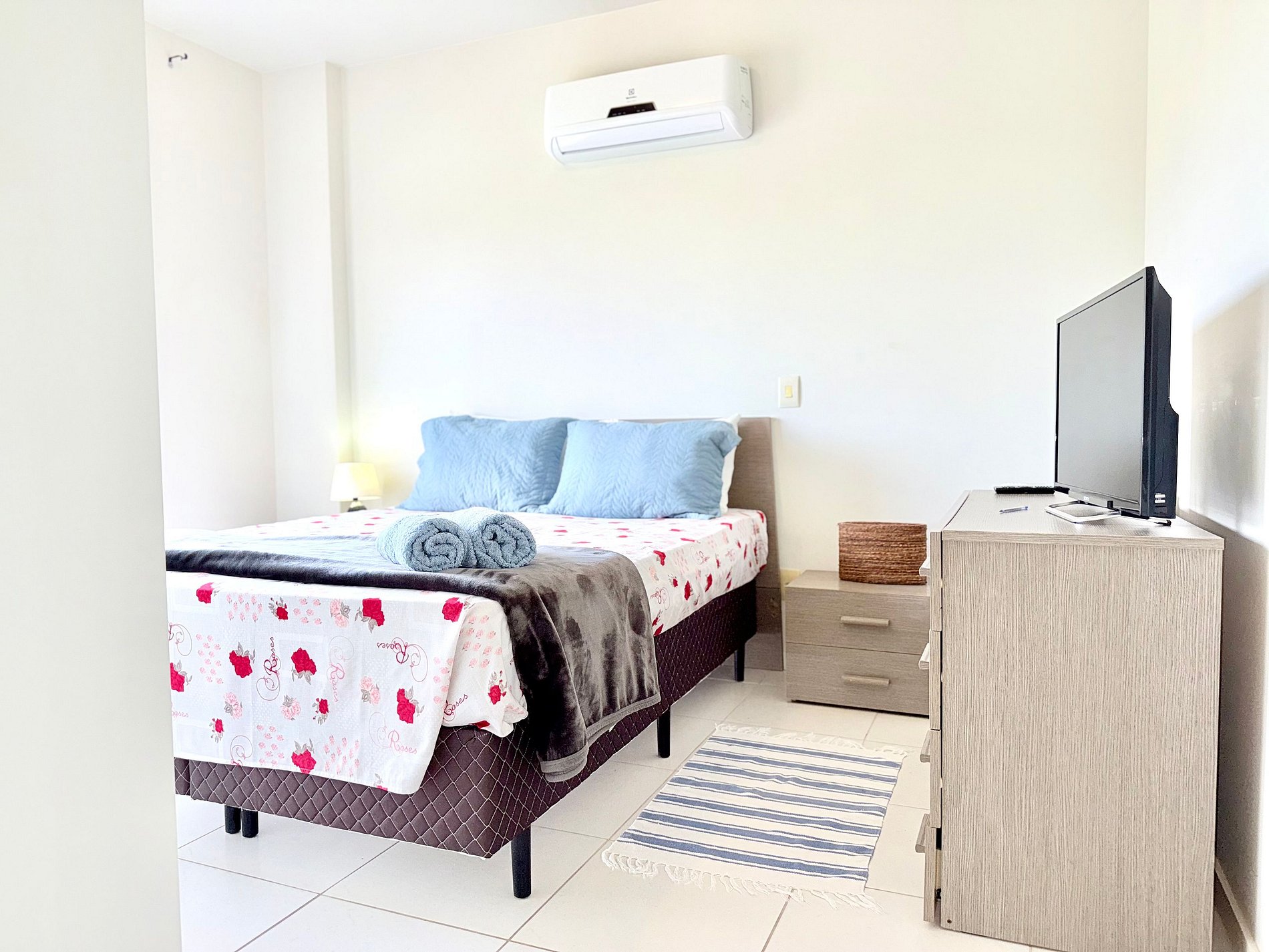 Espaçoso e arejado, o apê foi preparado pensando em hóspedes que gostam de estar perto da praia em lugares práticos e confortáveis. Com 2 quartos sendo uma suíte com cama queen, quarto solteiro com 3 camas solteiro + colchão extra, ambos quartos com ar-condicionado split, +1 WC social.