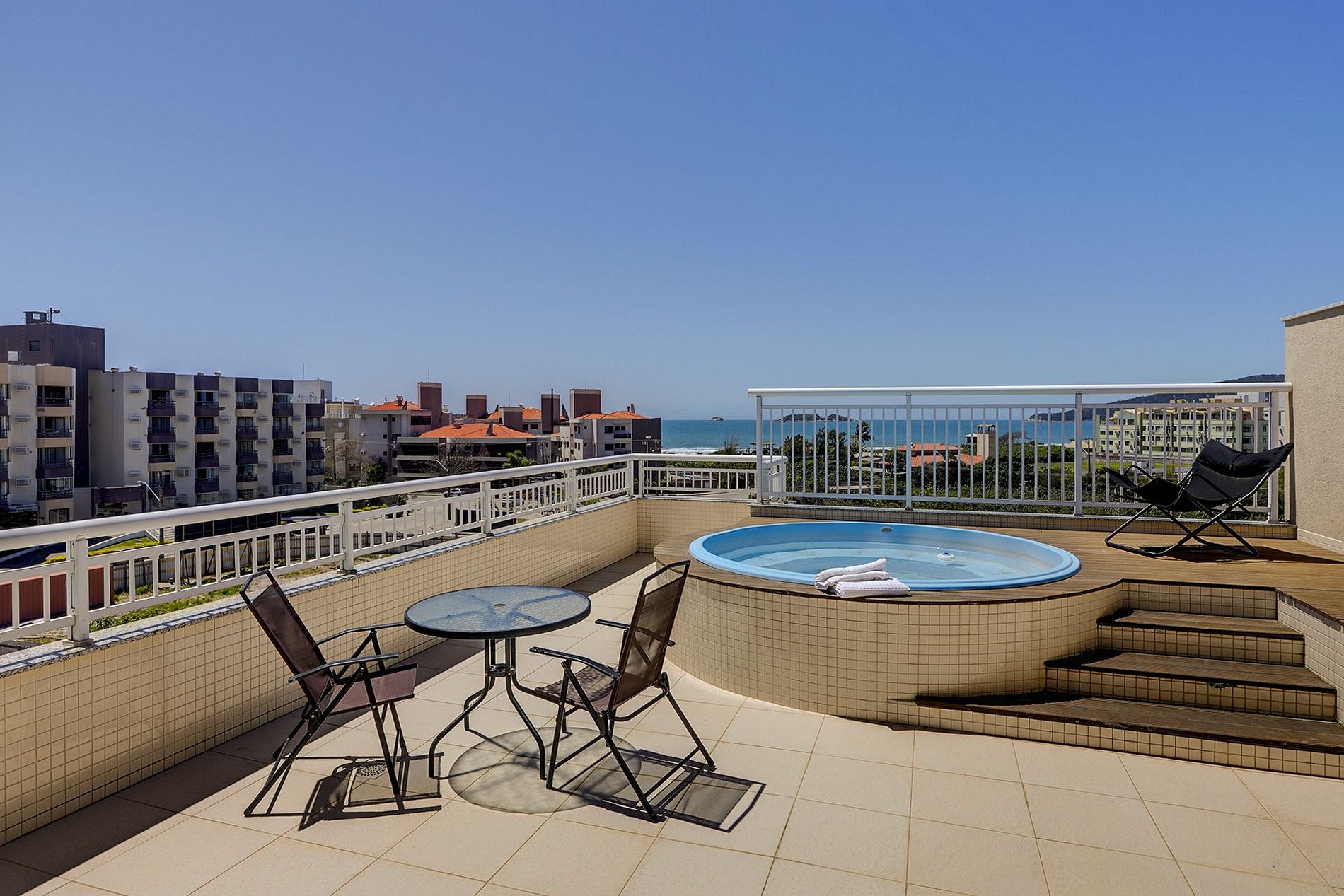 Cobertura com Piscina Privativa e Vista para o Mar na Praia dos Ingleses Perfeita para quem busca férias inesquecíveis, este espaço foi preparado para proporcionar conforto, privacidade e lazer exclusivo, com piscina privativa e uma vista incrível para o mar. Acomodações • Suíte casal com cama queen, colchão de qualidade e enxoval completo. • Segundo quarto com 3 camas de solteiro, ambos os dormitórios com ar-condicionado e roupeiros. • Sala de estar com sofá-cama, TV + Chromecast e Wi-Fi de alta velocidade. Ambientes integrados Cozinha completa, espaço de refeições aconchegante e lavanderia equipada para maior praticidade durante a estadia. Destaques da cobertura Ambientes iluminados com vista para o mar, sacada ampla com churrasqueira e piscina privativa de frente para a área verde de preservação e a movimentada Rua das Gaivotas. O Condomínio • Cobertura no 4º andar com acesso por elevador. • Portaria 24 horas. • Enorme piscina coletiva para adultos e crianças. • Apenas 150 metros do mar. Localização privilegiada • 1 quadra do Mercado Gaivotas e farmácia. • Ao lado de restaurantes e da famosa sorveteria italiana. • Ponto de partida para trilhas, como a da Feiticeira, que leva até a Praia Brava.