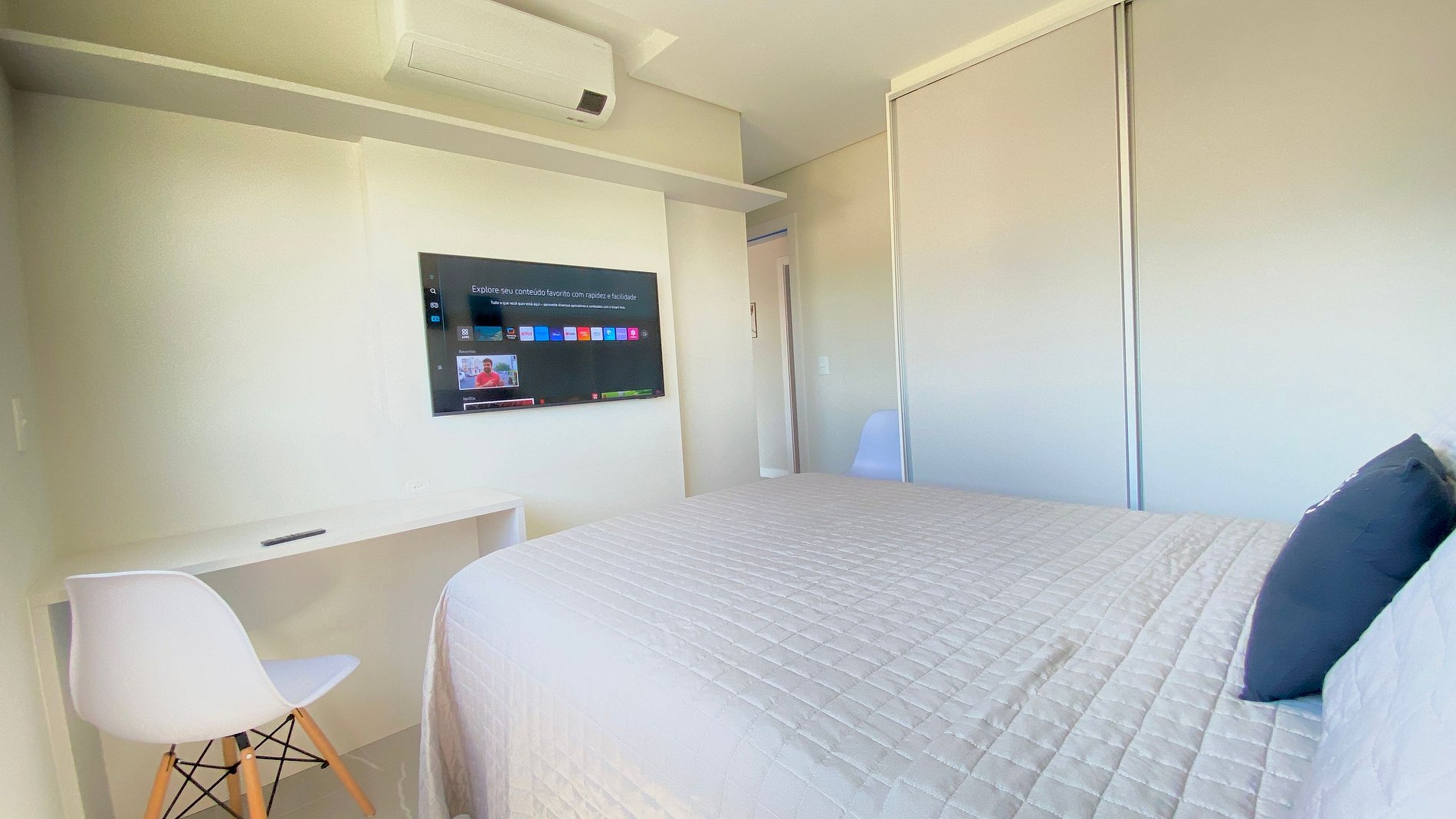 Para conforto dos hóspedes o apartamento oferece 2 quartos para até 5 pessoas, sendo 1 suíte com uma cama queen confortável e espaço de HOME OFFICE.