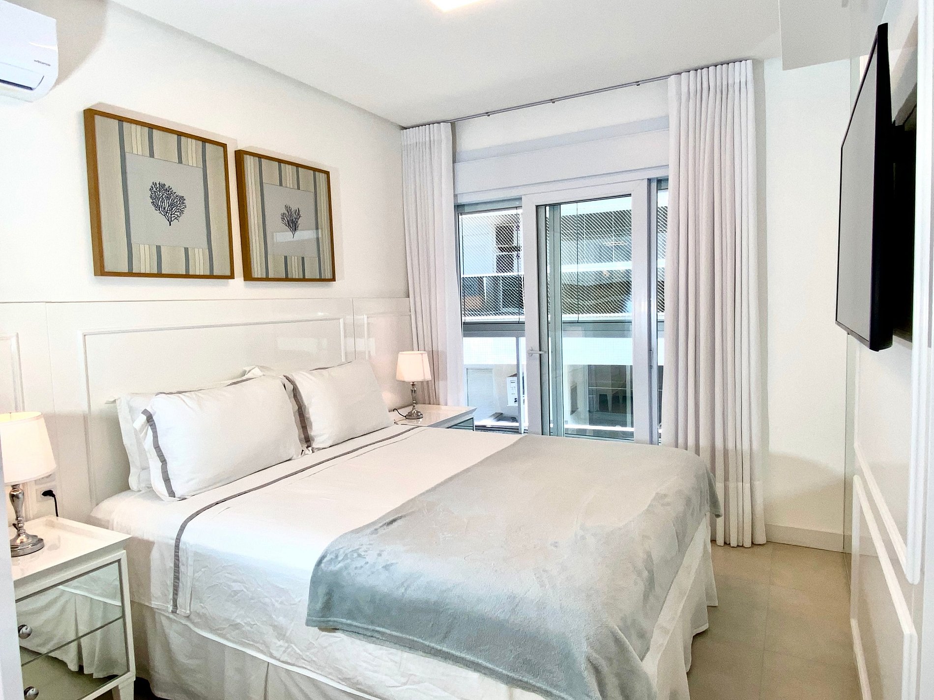 Para hospedes exigentes que procuram um lugar de alto padrão para passar férias na praia. Esse apartamento foi projetado com muito bom gosto e requinte. Com 2 quartos, sendo uma suíte com cama queen, TV e ar-condicionado.