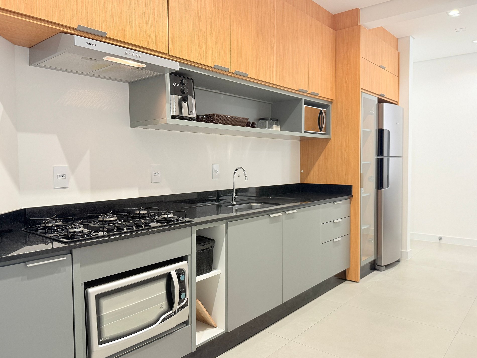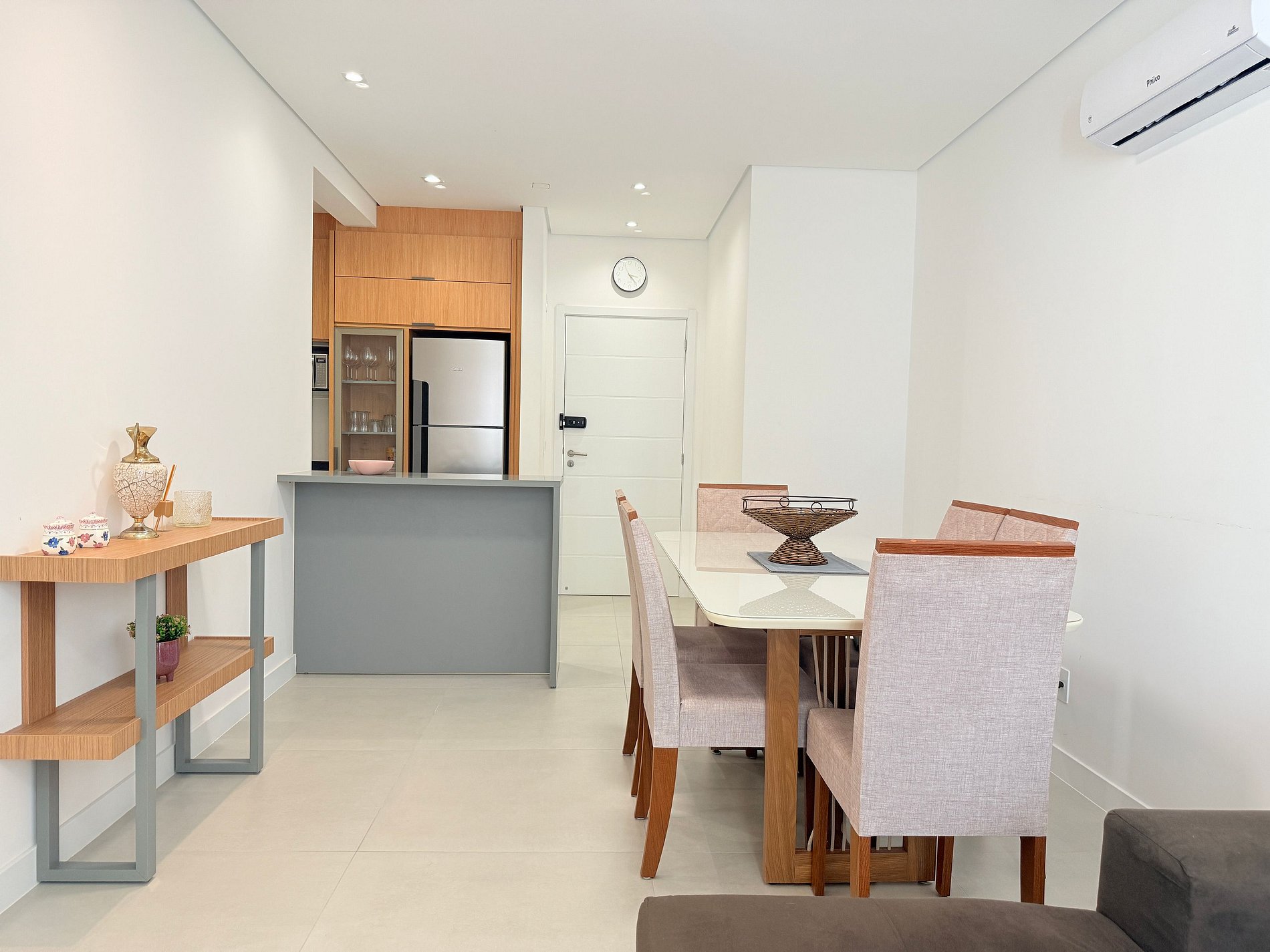 Apartamento novo, recém mobiliado, e preparado para receber hospedes que curtem passar férias na praia. Oferece 2 dormitórios sendo 1 suite com cama queen e ar-condicionado. Segundo quarto também cama casal + 2 colchões solteiro e ar-condicionado e mais um banheiro social. Sala de jantar com mesa grande para reunir familiares e amigos, conjugada com a sala de estar com uma SMart TV e wi-fi. E uma cozinha mais que completa, com tudo novo para hospedes exigentes. Varanda com churrasqueira e lavanderia com lavadora.