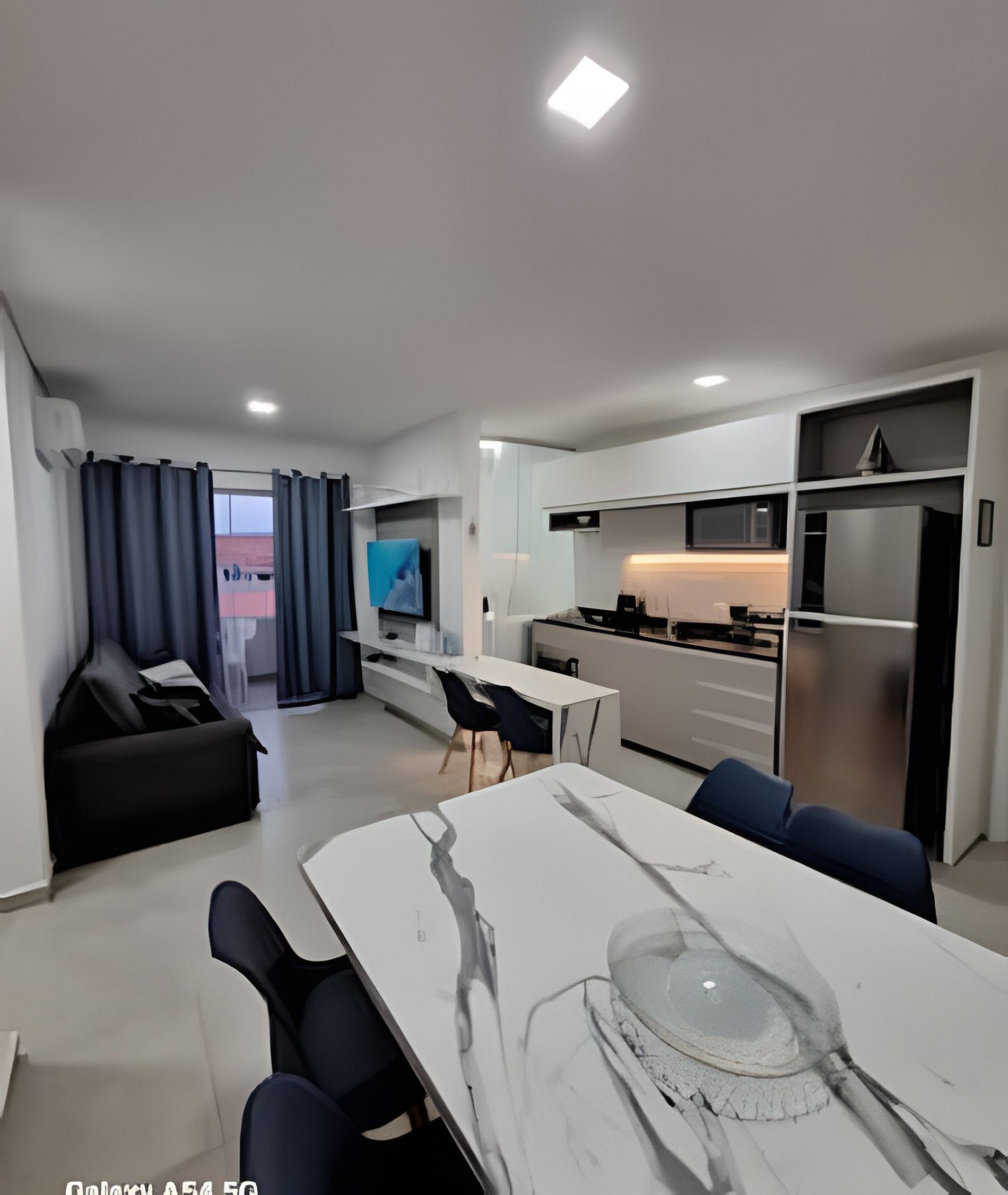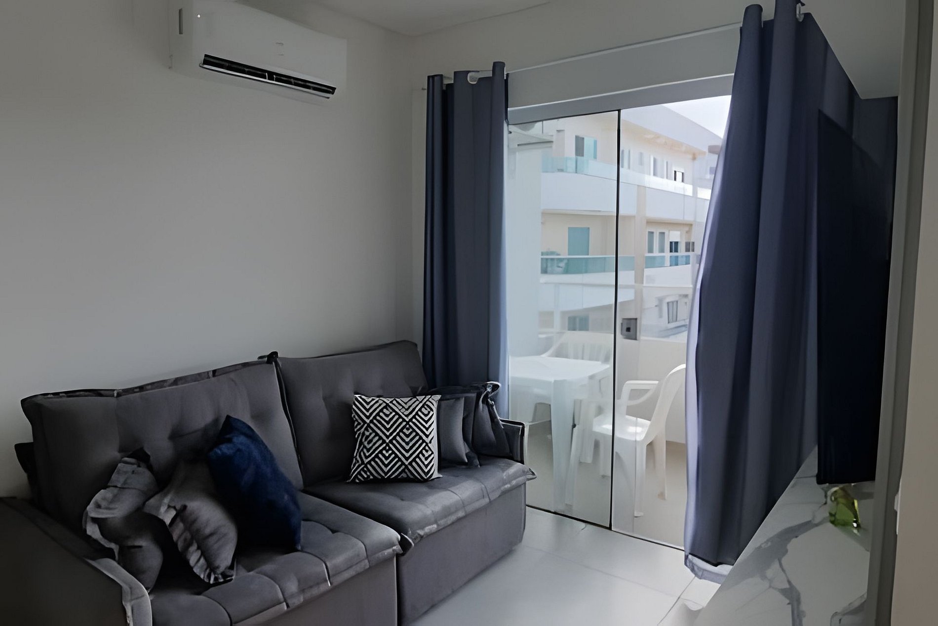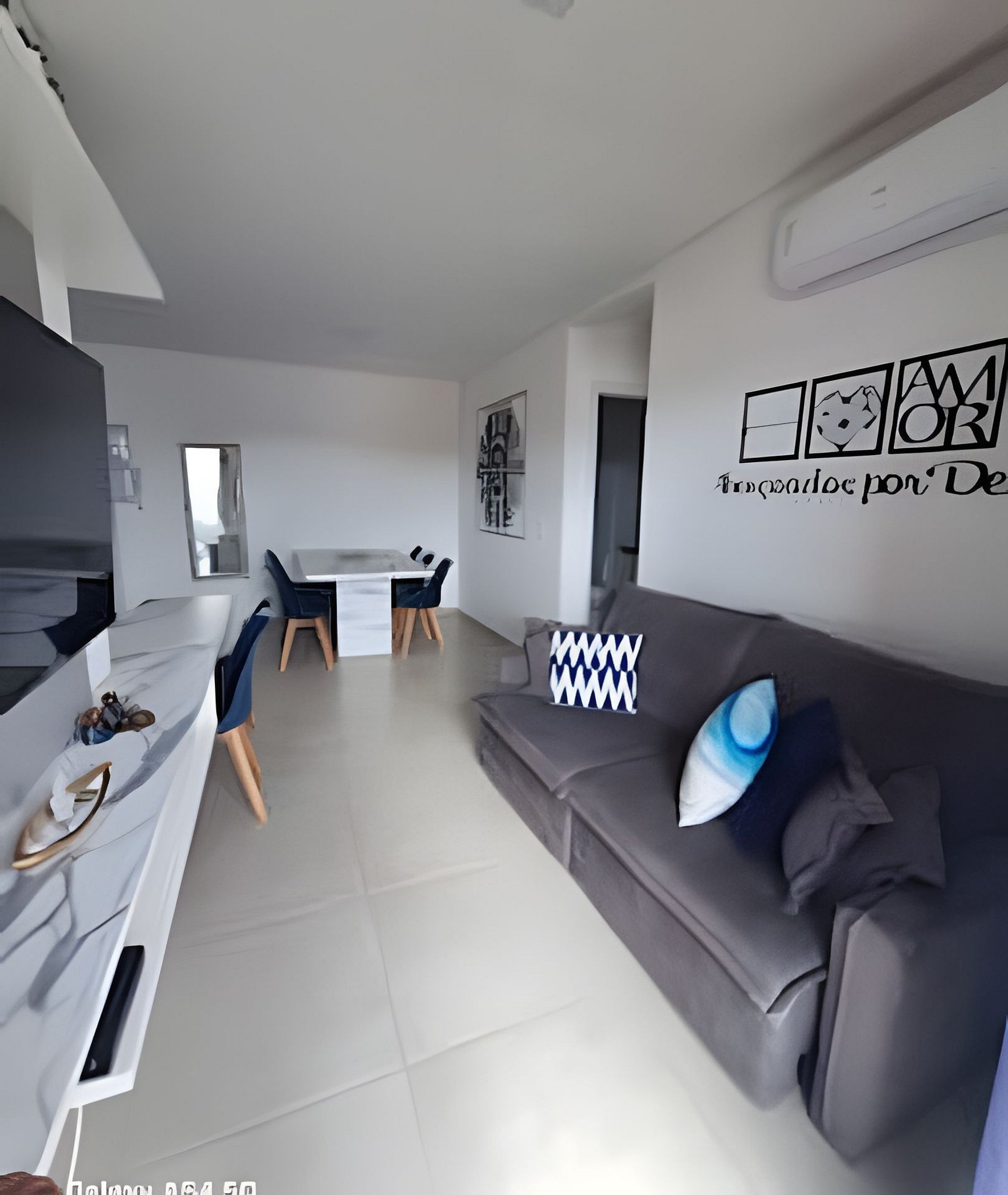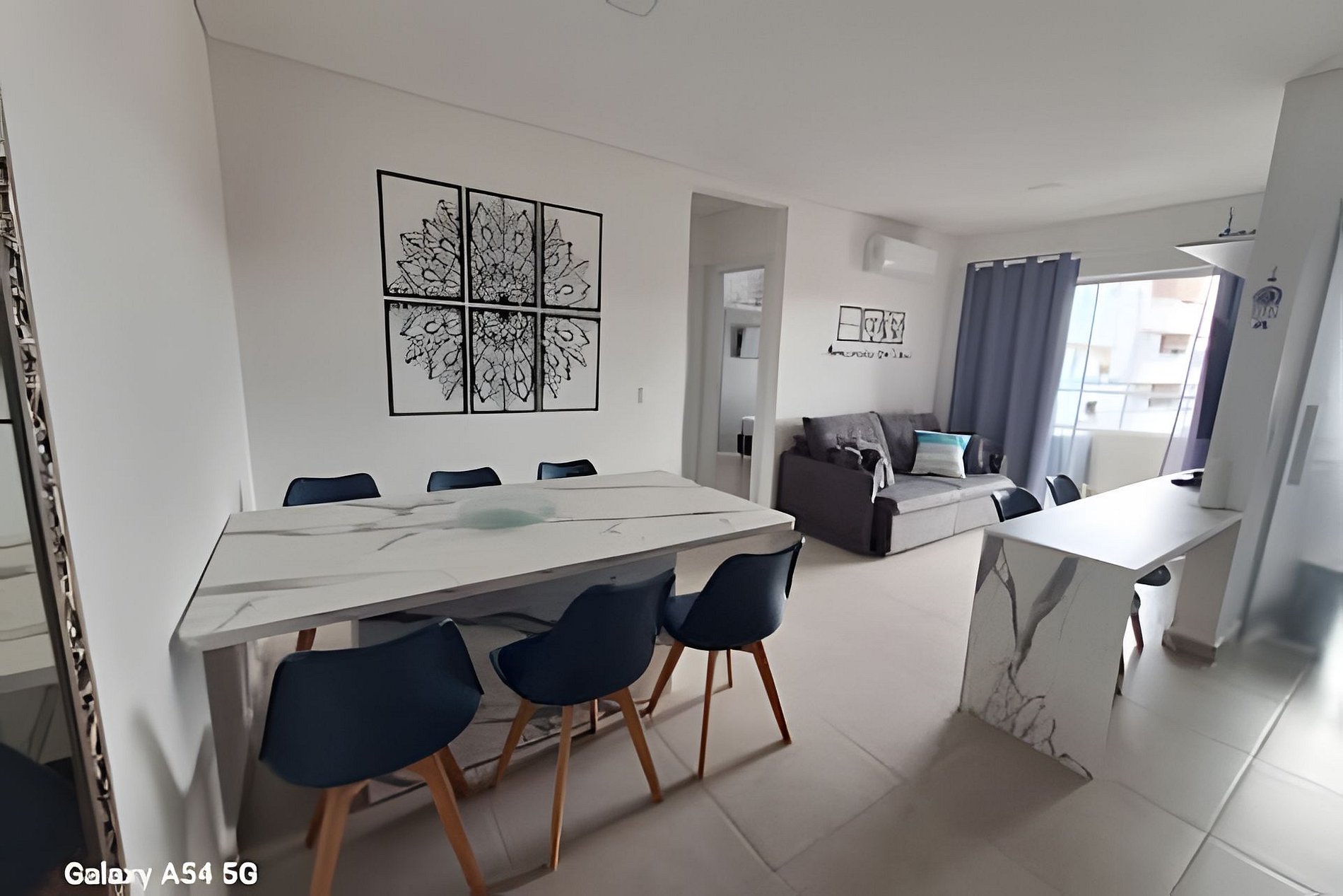Apto novo a 400m da praia no centrinho. Próximo dos bares, restaurantes, farmácia e lojas. Apto 3 andar de frente c/churrasqueira e sacada. Dois quartos, sendo 1 suíte c/cama Queen e TV. Segundo quarto 2 camas solteiro e 1 auxiliar. Ar condicionado sala e quartos. Sala TV 50" Smart, canais e filmes liberados. Possui Wi-Fi e Sofá cama 2 lugares na sala. Cozinha completa e lavanderia com maq lavar roupa. Garagem 1 vaga. Acomoda até 5 pessoas.