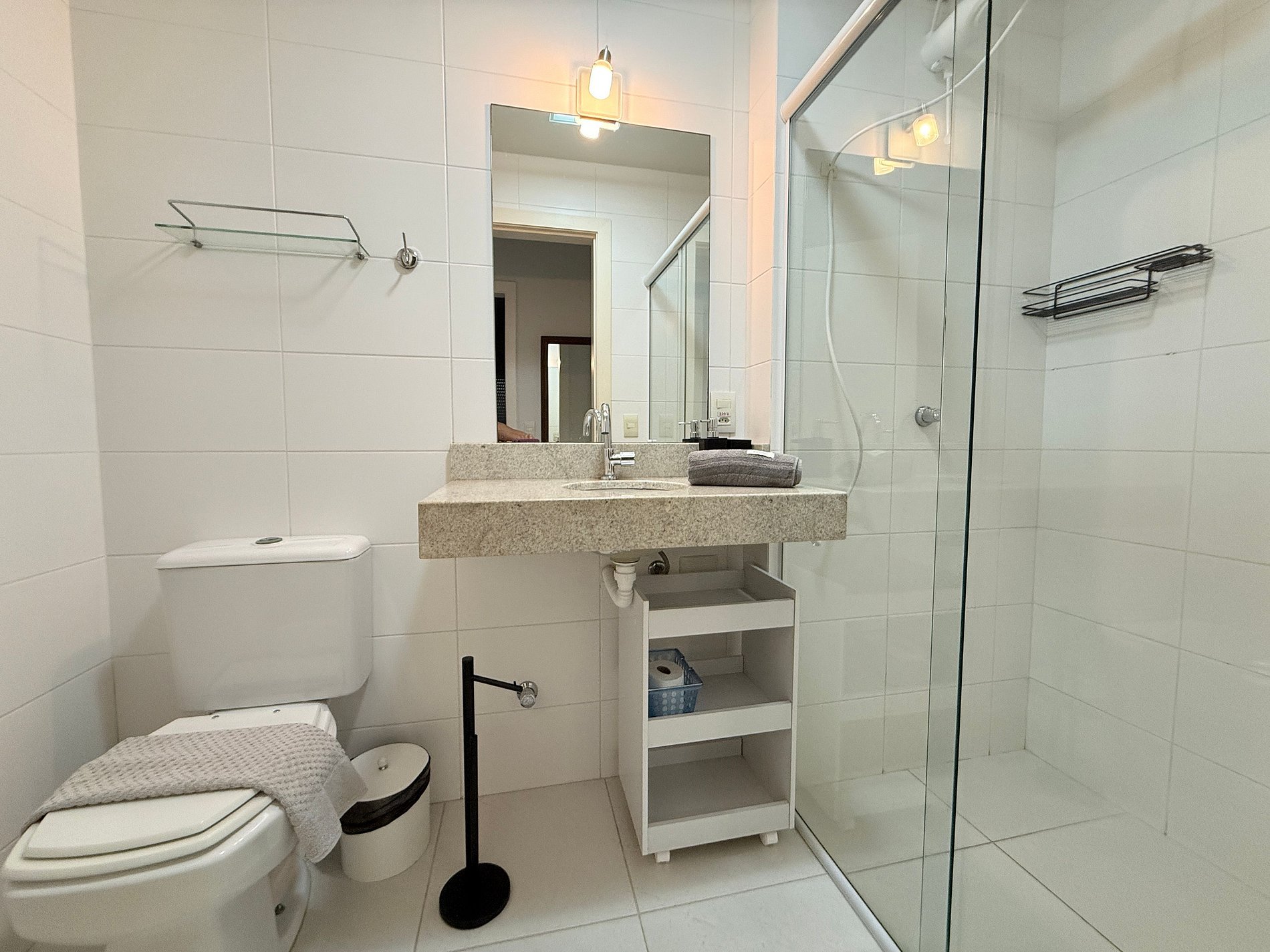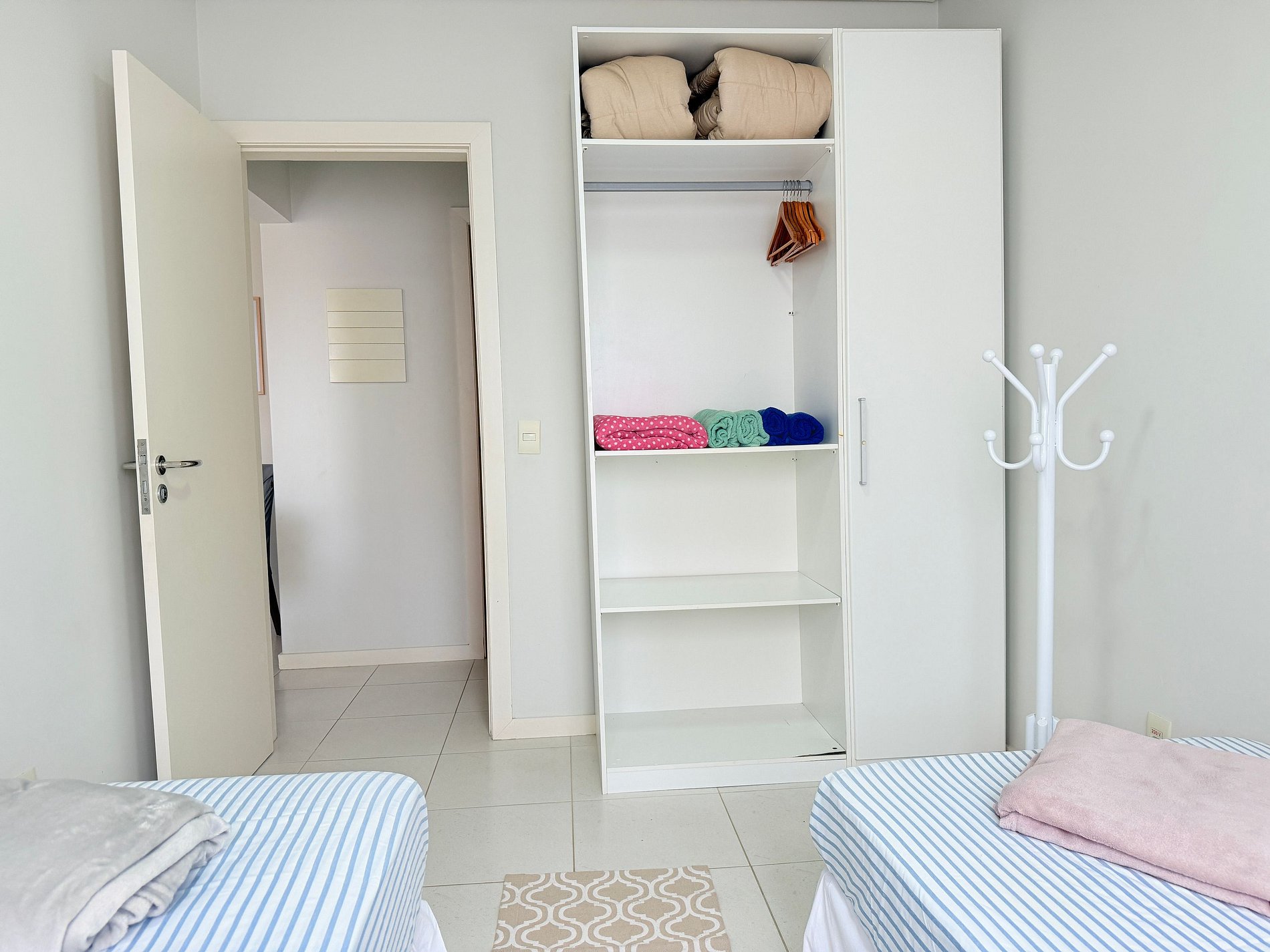 O condomínio oferece garagem coberta para 1 carro e segurança 24h. A região é residencial, tranquila e segura, com mar de águas cristalinas e areia branca e macia , perfeito para relaxar e aproveitar o melhor de Floripa.