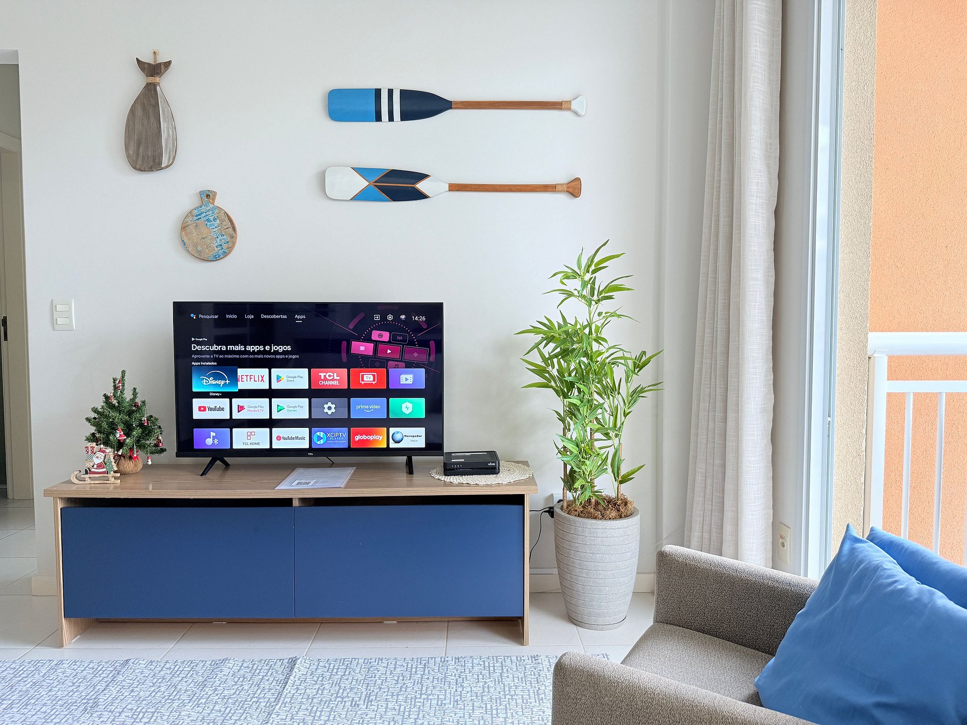 Com 2 quartos climatizados, sendo uma suíte com cama de quenn e TV SMART, e um segundo quarto com 2 camas de solteiro + um colchão solteiro. Além disso, há um banheiro social, acomodando até 5 hóspedes com conforto.
