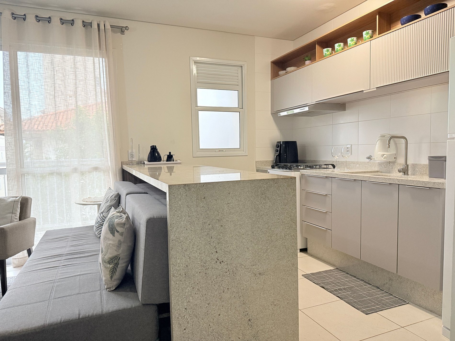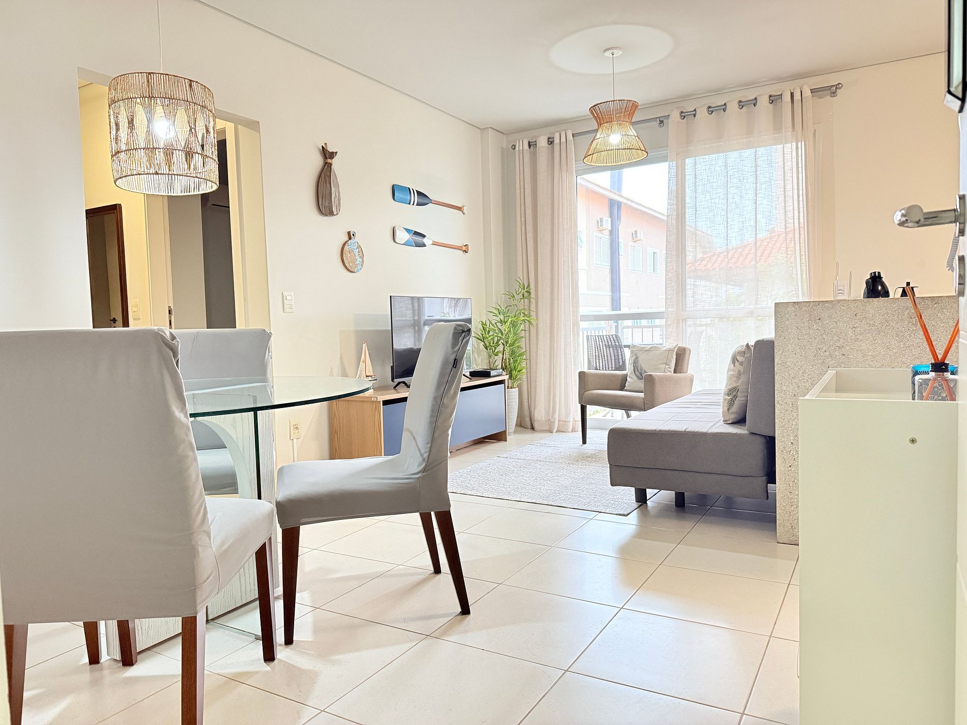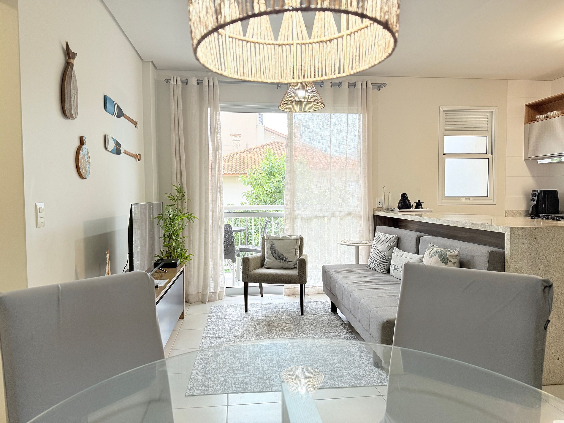 Ambiente acolhedor, iluminado e arejado, vista da montanha que traz de tranquilidade, dentro de um condomínio seguro, a menos de 150m da Praia dos Ingleses. Com churrasqueira privativa e garagem.