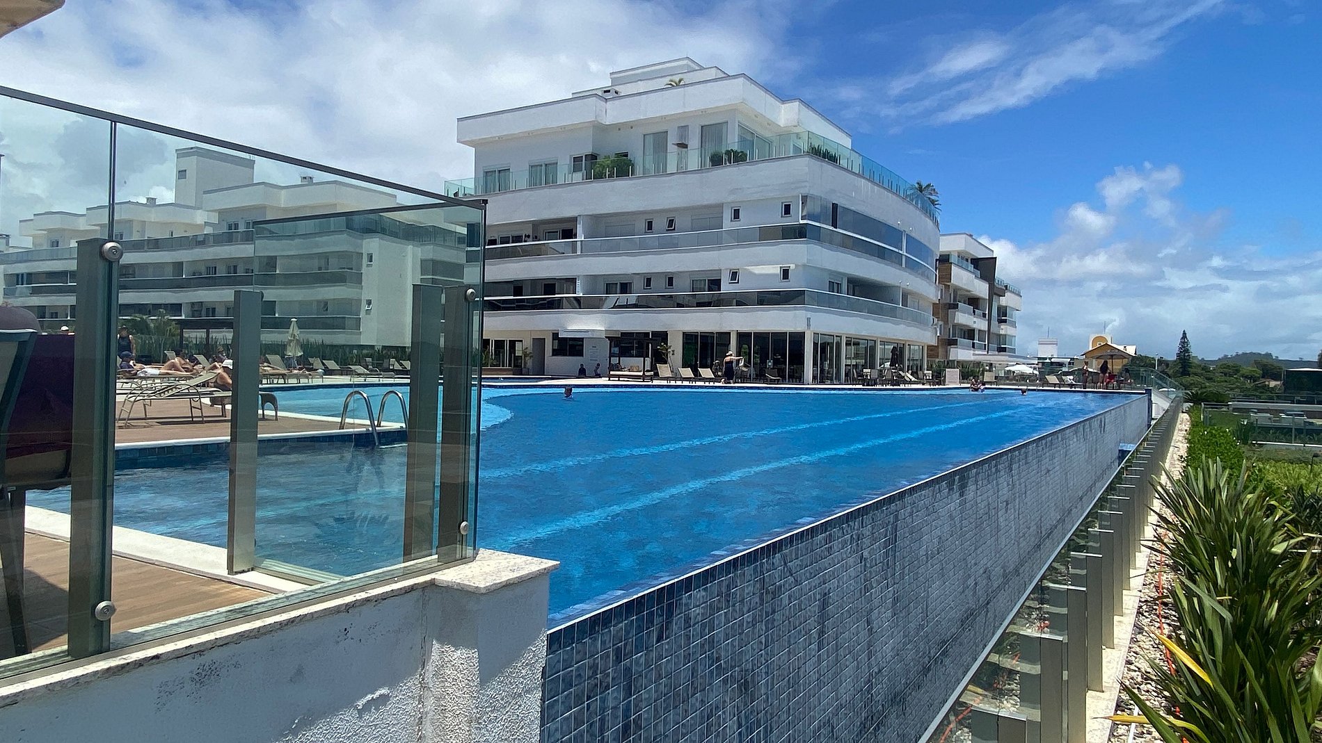 Estando à a 50m de altura do nível do mar em condomínio considerado a maior área molhada de Florianópolis. Proporcionando uma vista panorâmica de toda a da Praia dos Ingleses. Com 4 piscinas, sendo uma aquecida interna, e outra de borda infinita de tamanho Olímpico. E espaço verde gigante com vistas de tirar o fôlego. Apartamento com localização privilegiada no condomínio com uma linda vista para as piscinas e o mar. Com mobilia de muito bom gosto garantindo conforto aos hóspedes.