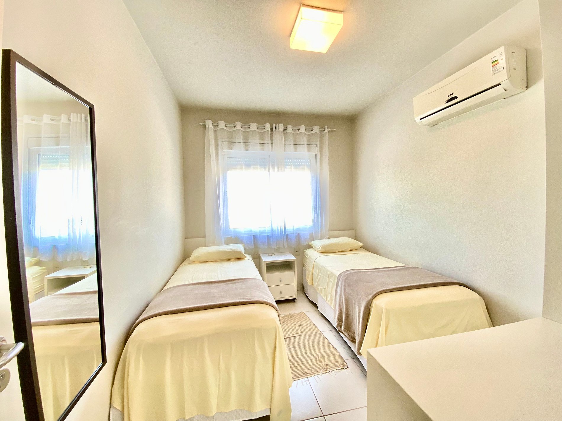 • Segundo quarto com duas camas box de solteiro e ar-condicionado.