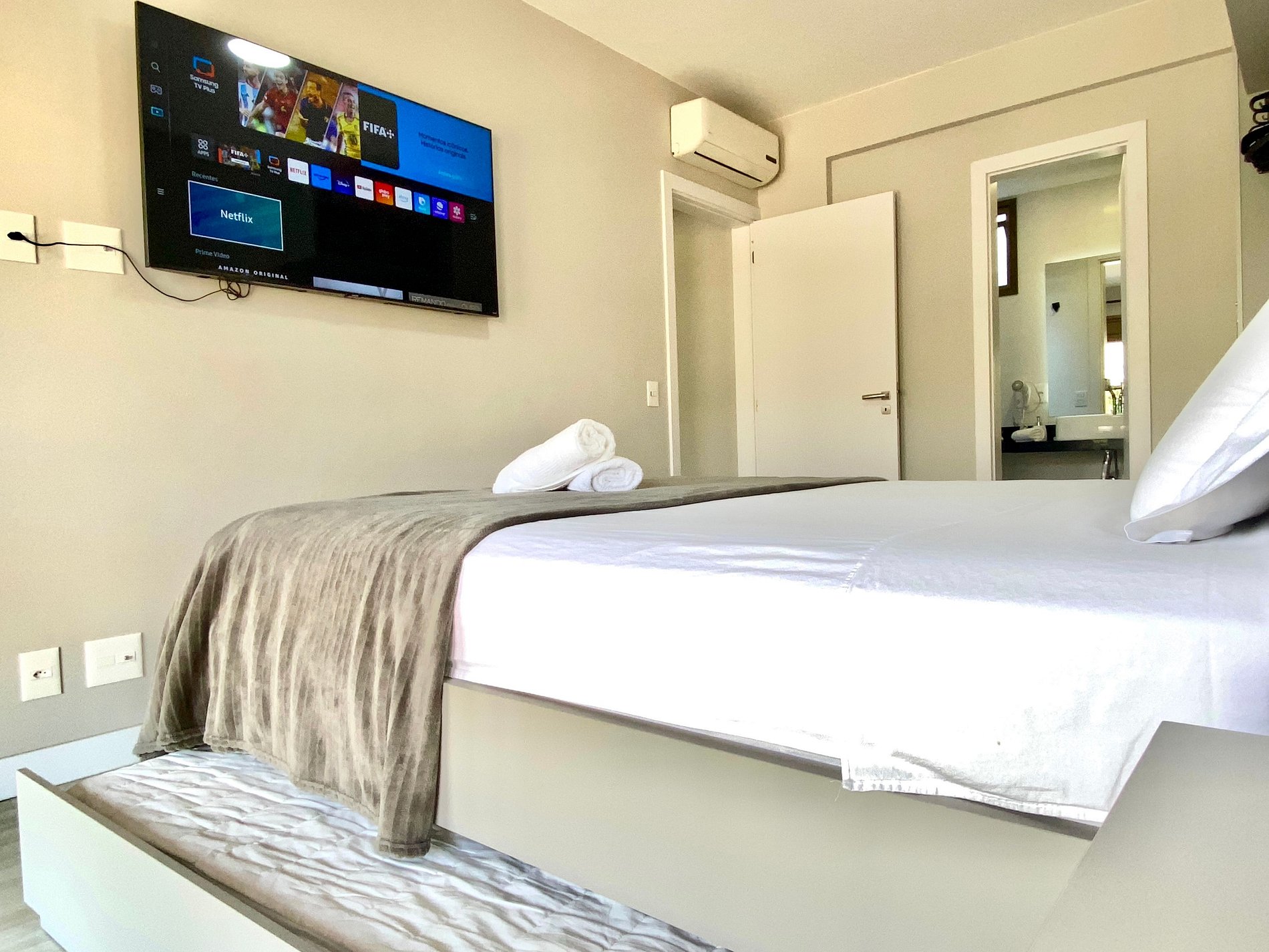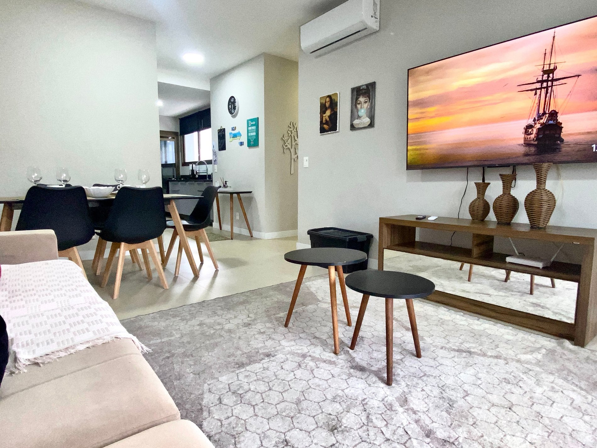 Sala de estar com SMART TV, wi-fi e canais básicos, espaço possui ar condicionado 18.000BTU. Super conforto para sua estadia!!!