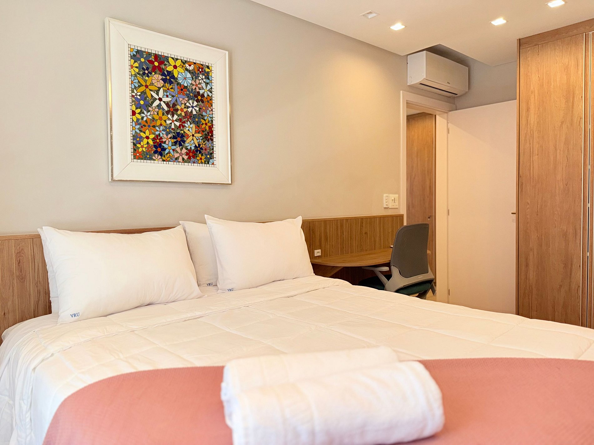 • Todo o apartamento é novo, sofisticado e requintado, com roupas de cama de altíssima qualidade que garantem noites de sono perfeitas.