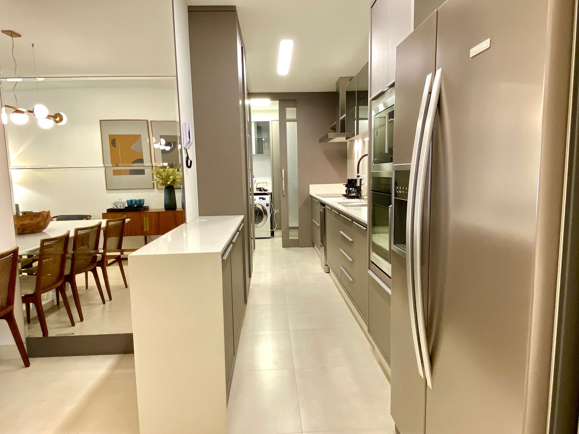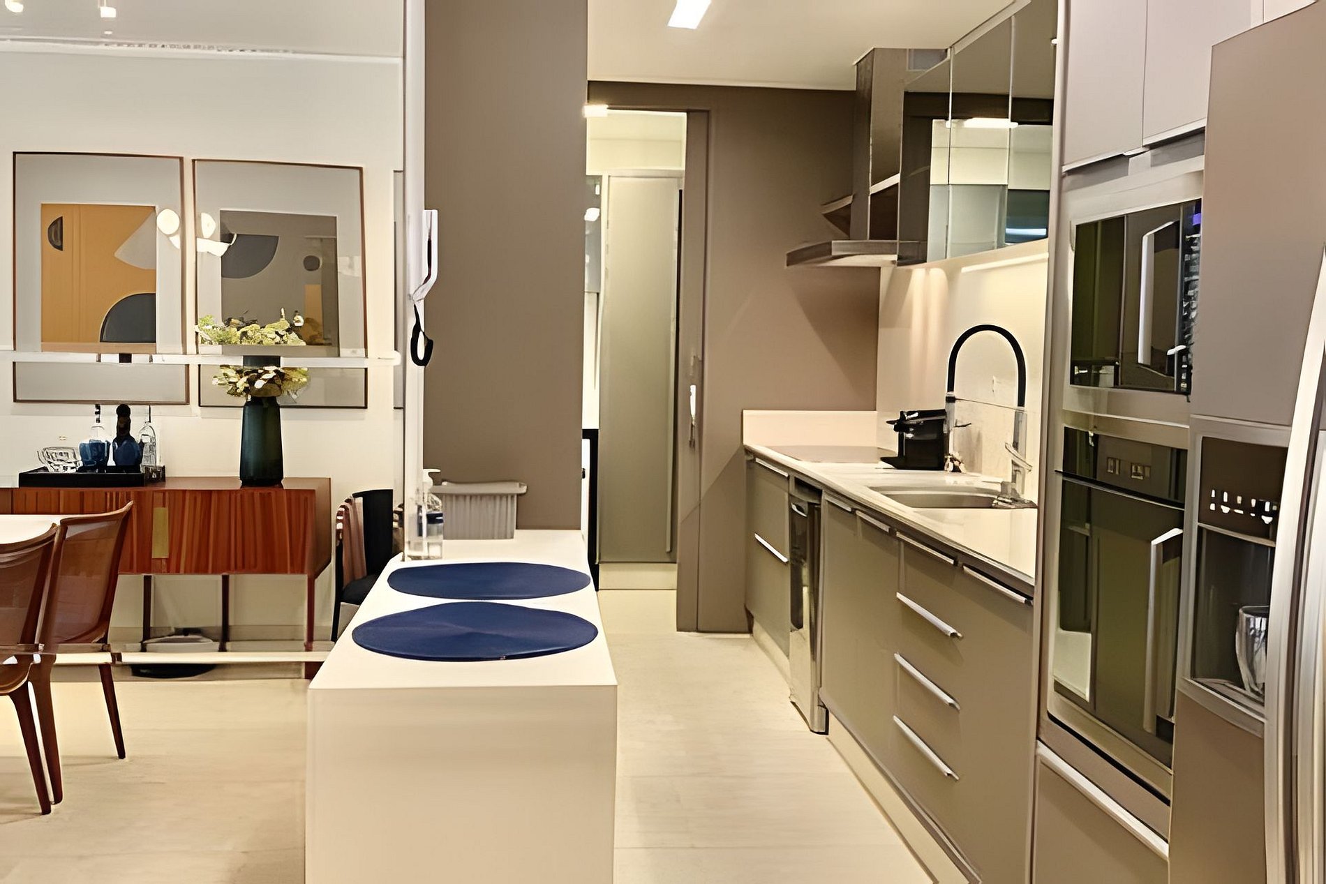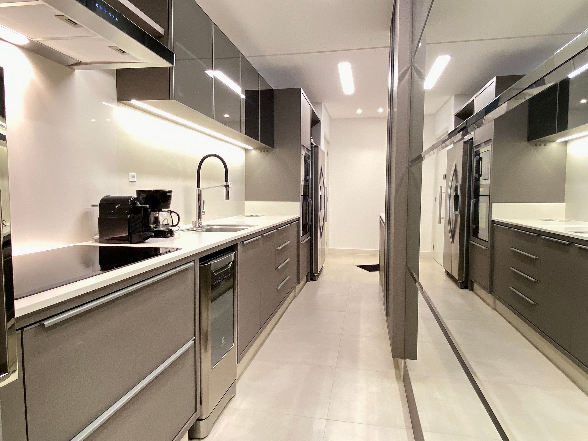 Cozinha mais que completa, com todos os utensílios para quem adora preparar sua refeição e não quer lavar a louça. Esse apartamento oferece também lava-louças. Tudo novo…