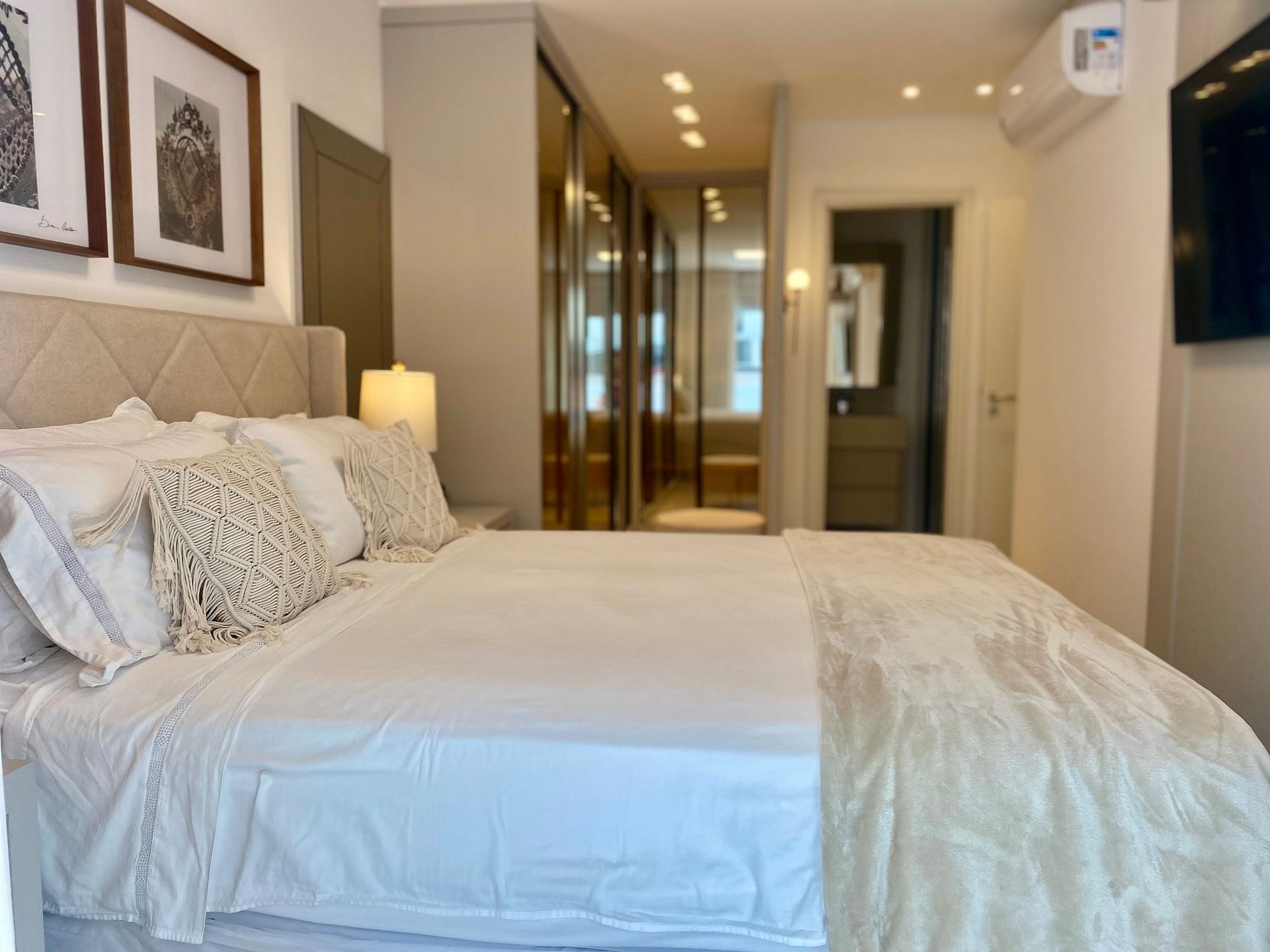 Para hospedes exigentes que procuram um lugar de alto padrão para passar férias na praia. Esse apartamento foi projetado com muito bom gosto e requinte. Com 2 quartos, sendo uma suíte com cama queen, TV e ar-condicionado.