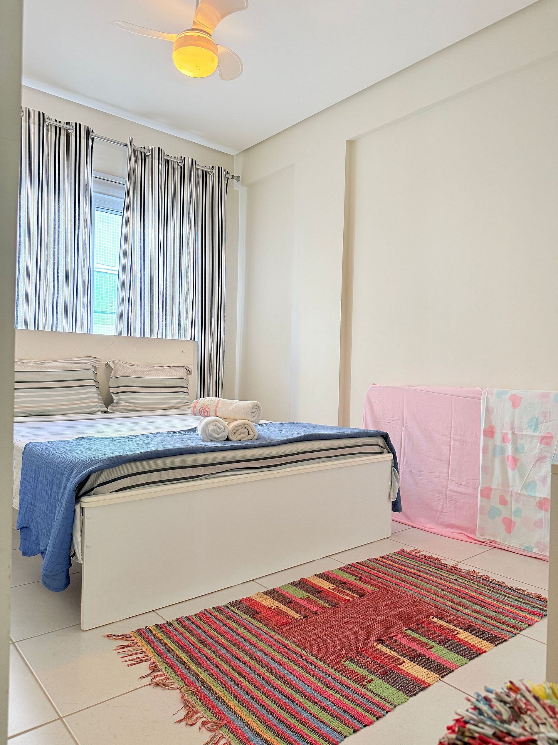 Apto amplo, espaçoso, perfeito para família ou amigos que procuram 3 quartos, uma mesa que possa acomodar à todos e quase em frente à praia.