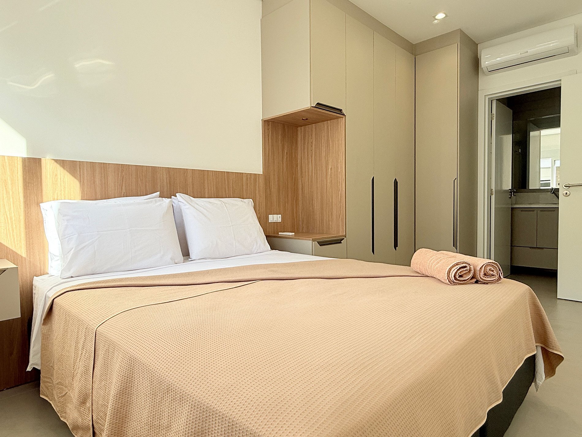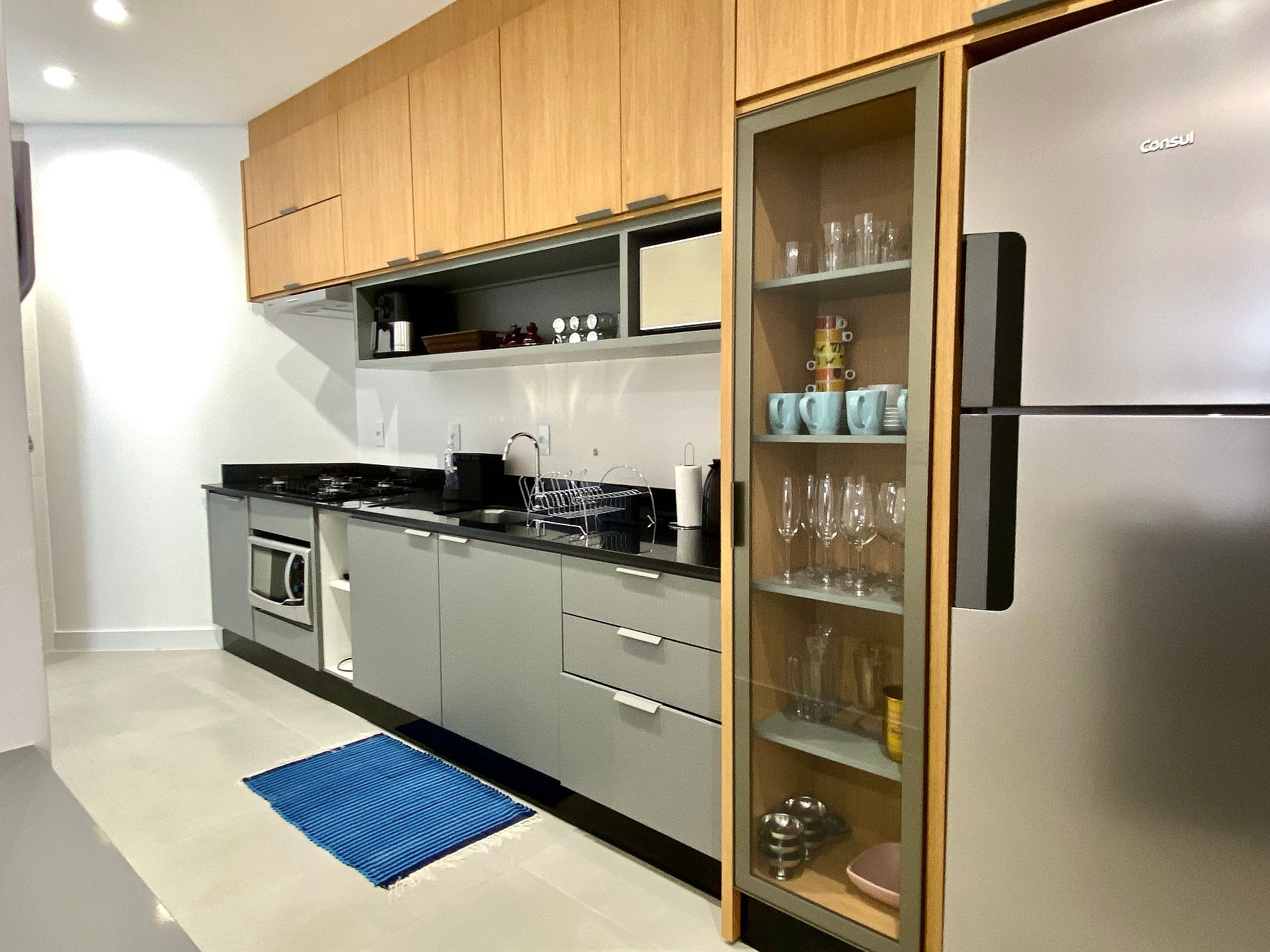 Apartamento novo, recém mobiliado, e preparado para receber hospedes que curtem passar férias na praia. Oferece 2 dormitórios sendo 1 suite com cama queen e ar-condicionado. Segundo quarto também cama casal + 2 colchões solteiro e ar-condicionado e mais um banheiro social. Sala de jantar com mesa grande para reunir familiares e amigos, conjugada com a sala de estar com uma SMart TV e wi-fi. E uma cozinha mais que completa, com tudo novo para hospedes exigentes. Varanda com churrasqueira e lavanderia com lavadora.