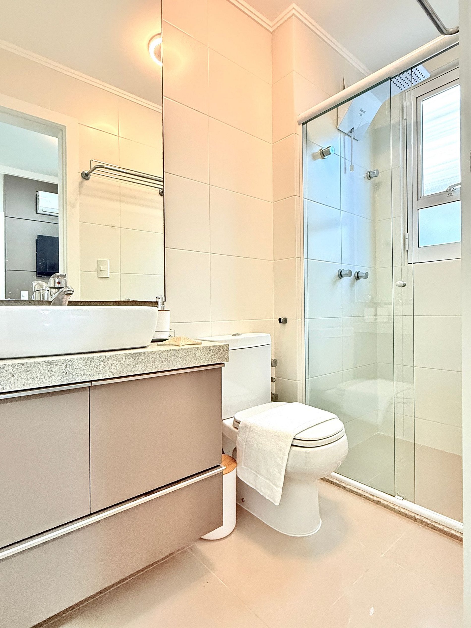 -Por favor não joguem papel higiênico ou outras coisas no vaso sanitário, pois os mesmos podem entupir durante sua acomodação. Use a lixeirinha ao lado.