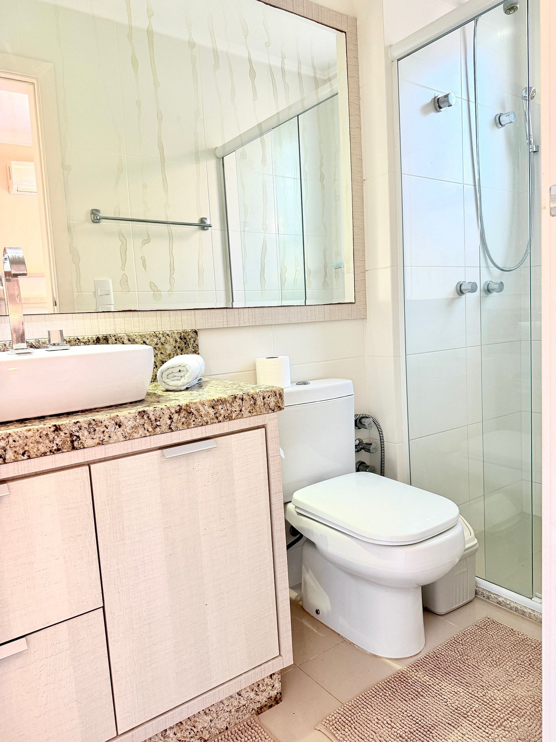 -Por favor não joguem papel higiênico ou outras coisas no vaso sanitário, pois os mesmos podem entupir durante sua acomodação. Use a lixeirinha ao lado.